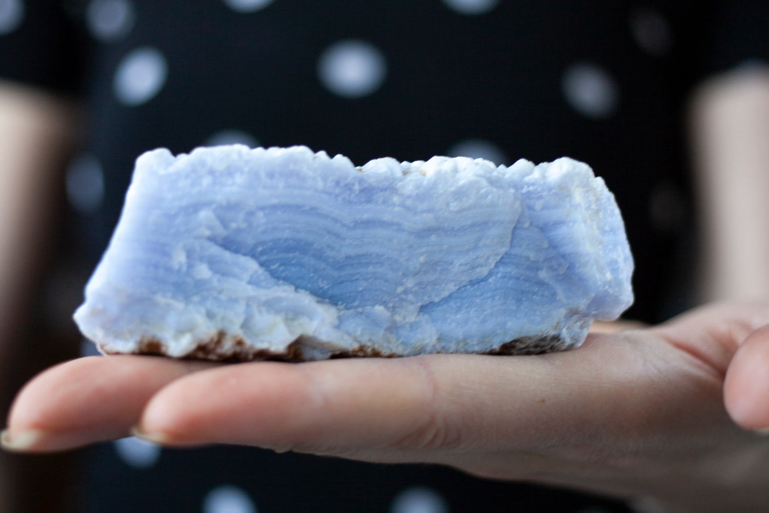Stunning blue lace agate specimens from the famous Namibian mine, known for being...