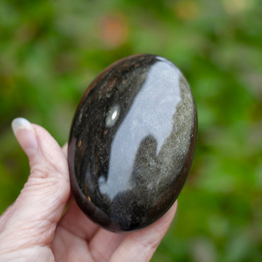 Sold outGalaxy Obsidian Palm Stone, Uncommon