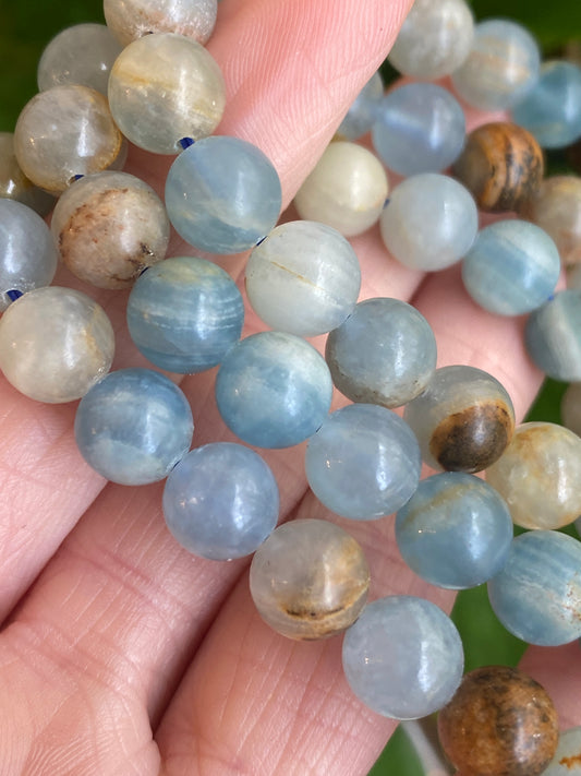 Aquatine Calcite Bracelet, Blue Calcite, Onyx