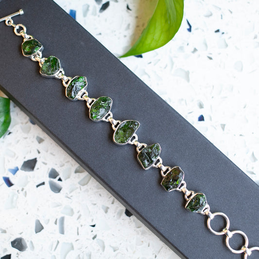 Raw Chrome Dioptase Bracelet, Sterling Silver