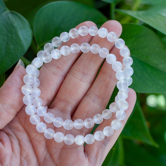 Selenite Bead Bracelet, 6mm