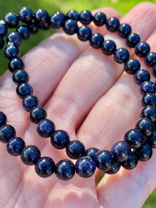 Sold outBlue Goldstone Bracelet, 6mm (Glass)