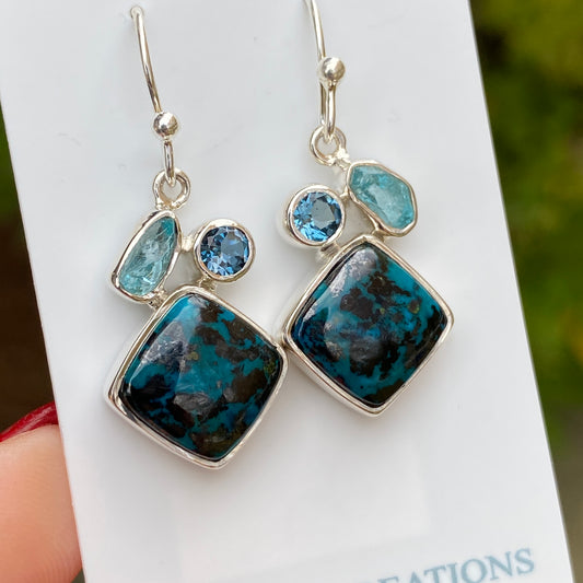 Chrysocolla, Topaz, Apatite Earrings, .925 Sterling Silver