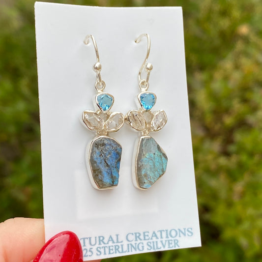 Labradorite, Herkimer Diamond, Topaz Earrings .925 Sterling Silver