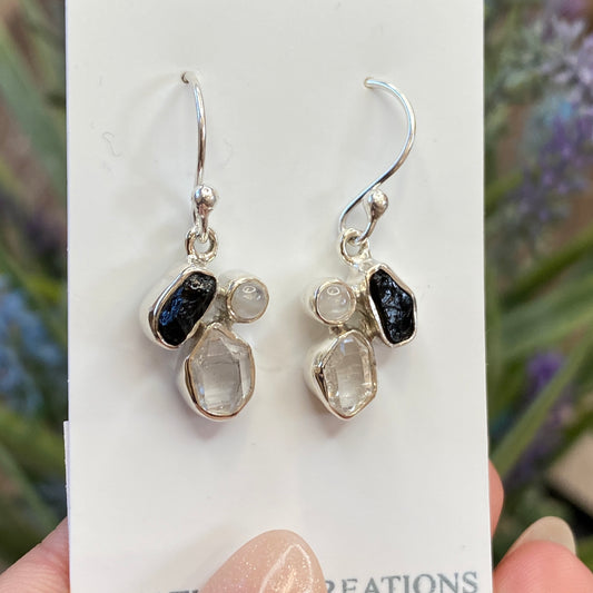 Herkimer Diamond, Tourmaline, Moonstone Earrings, .925 Sterling