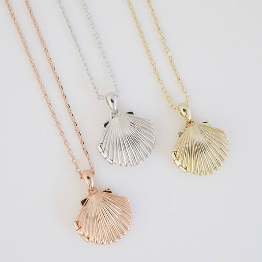 Shell Locket Necklace, Gold