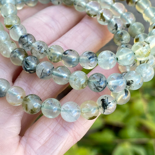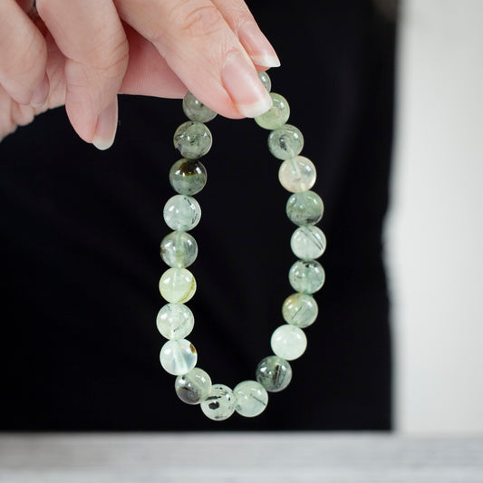 Prehnite with Epidote Bracelet, 6mm