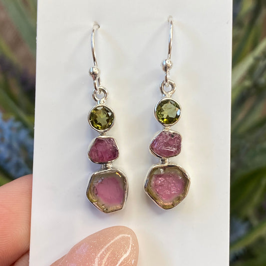 Herkimer Diamond, Tourmaline, Moonstone Earrings, .925 Sterling
