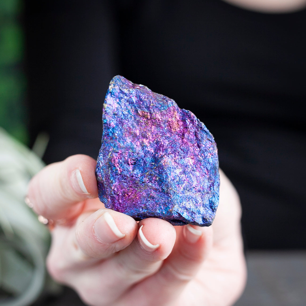 This is a vibrant, raw Chalcopyrite stone with royal blue and some...