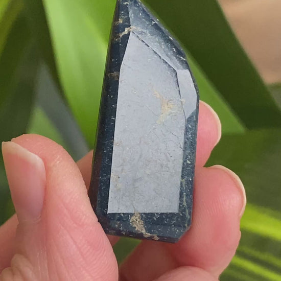 Rare find! This is a semi-polished piece of Aerinite from Spain. Hard to find because it is rare and not commonly collected for polishing. But it is beautiful, I wish there was more on the market. This was purchased from the miner at the 2026 Tucson gem shown. Aerinite is a rare, bluish-purple inosilicate mineral. Aerinite was used as a blue pigment in Romanesque paintings in many churches in Spain, and also in some French, including the most famous of them, the Pantocrator in the church of San Clemente de Tahull. Its metaphysical properties are not as well-documented or widely known as those of more common crystals. Generally, it is associated with creativity and inspiration. It is thought to bring about spiritual revelations or insight.