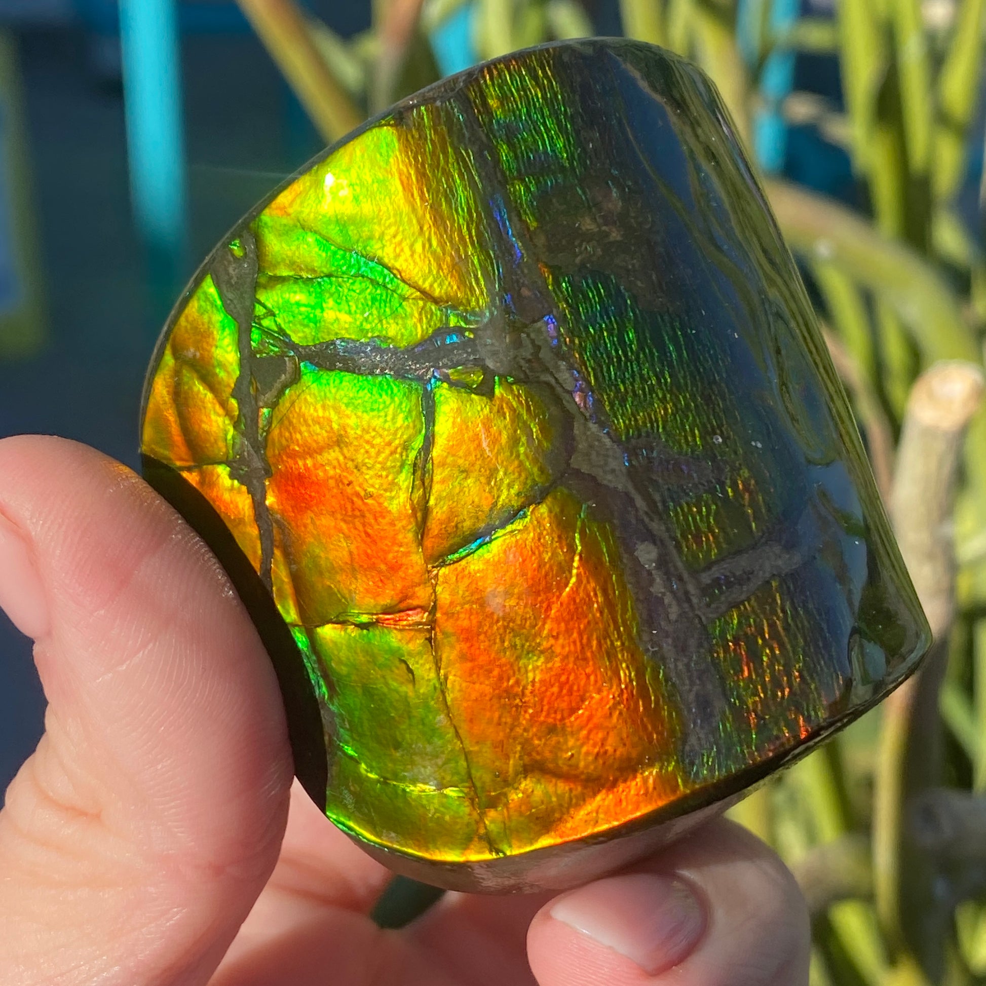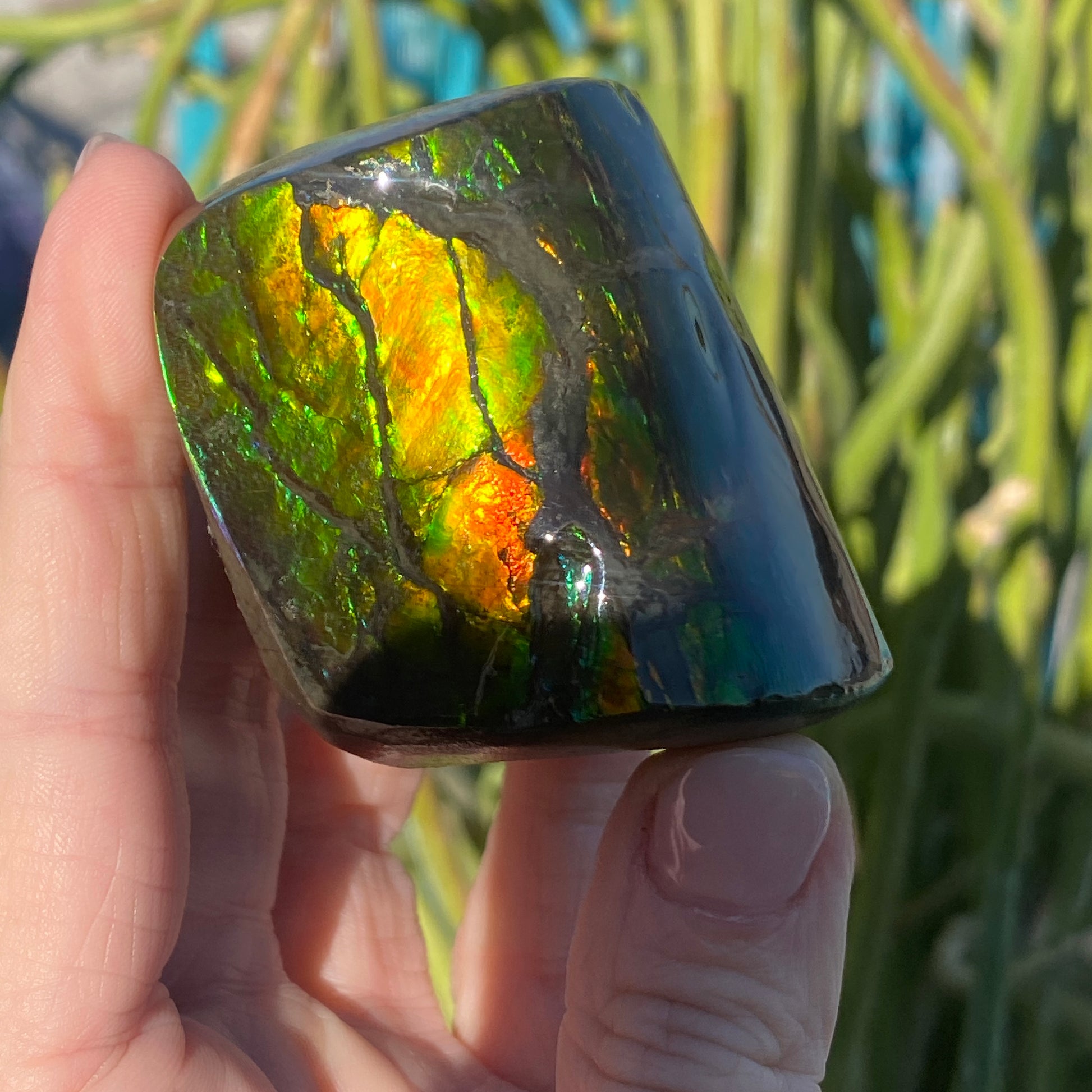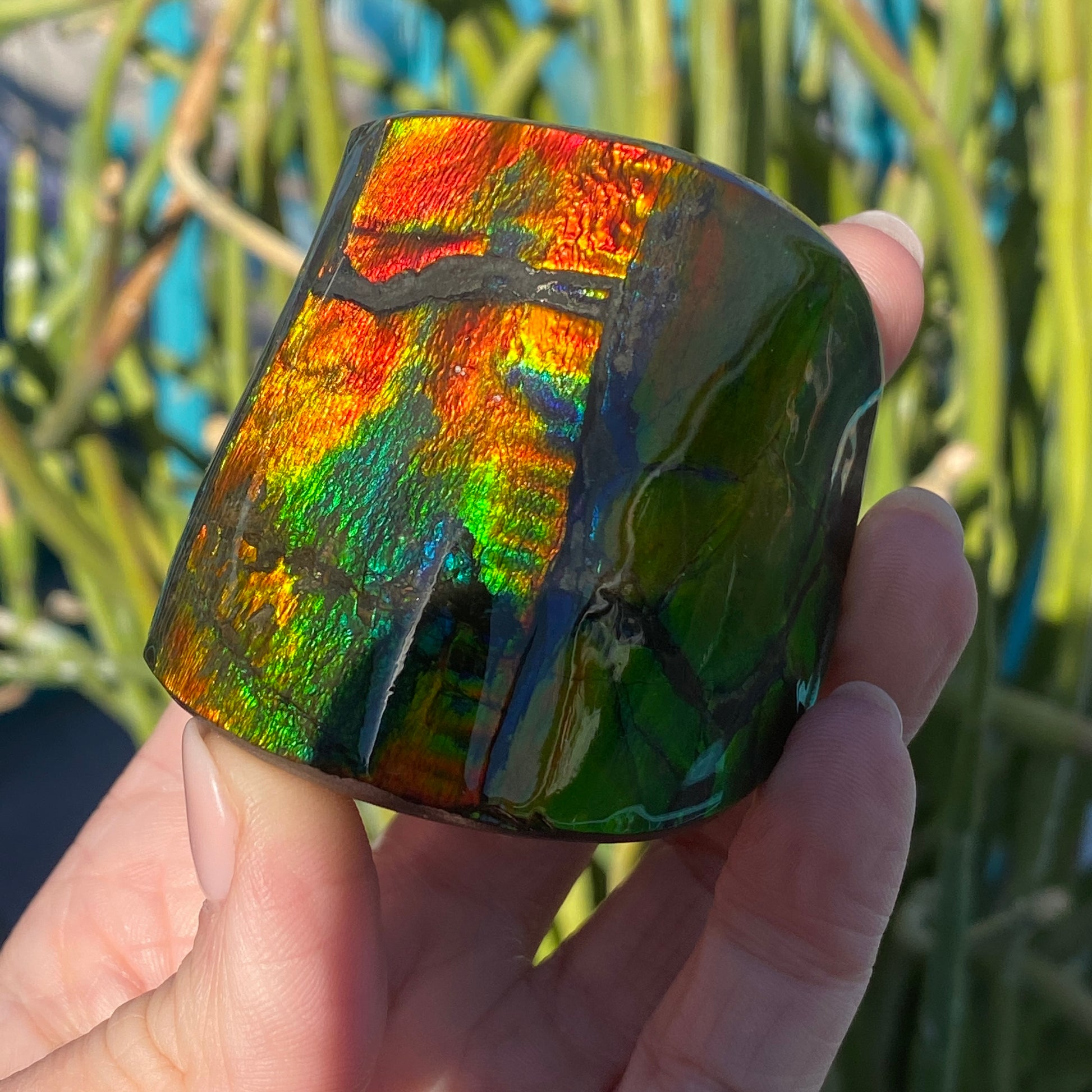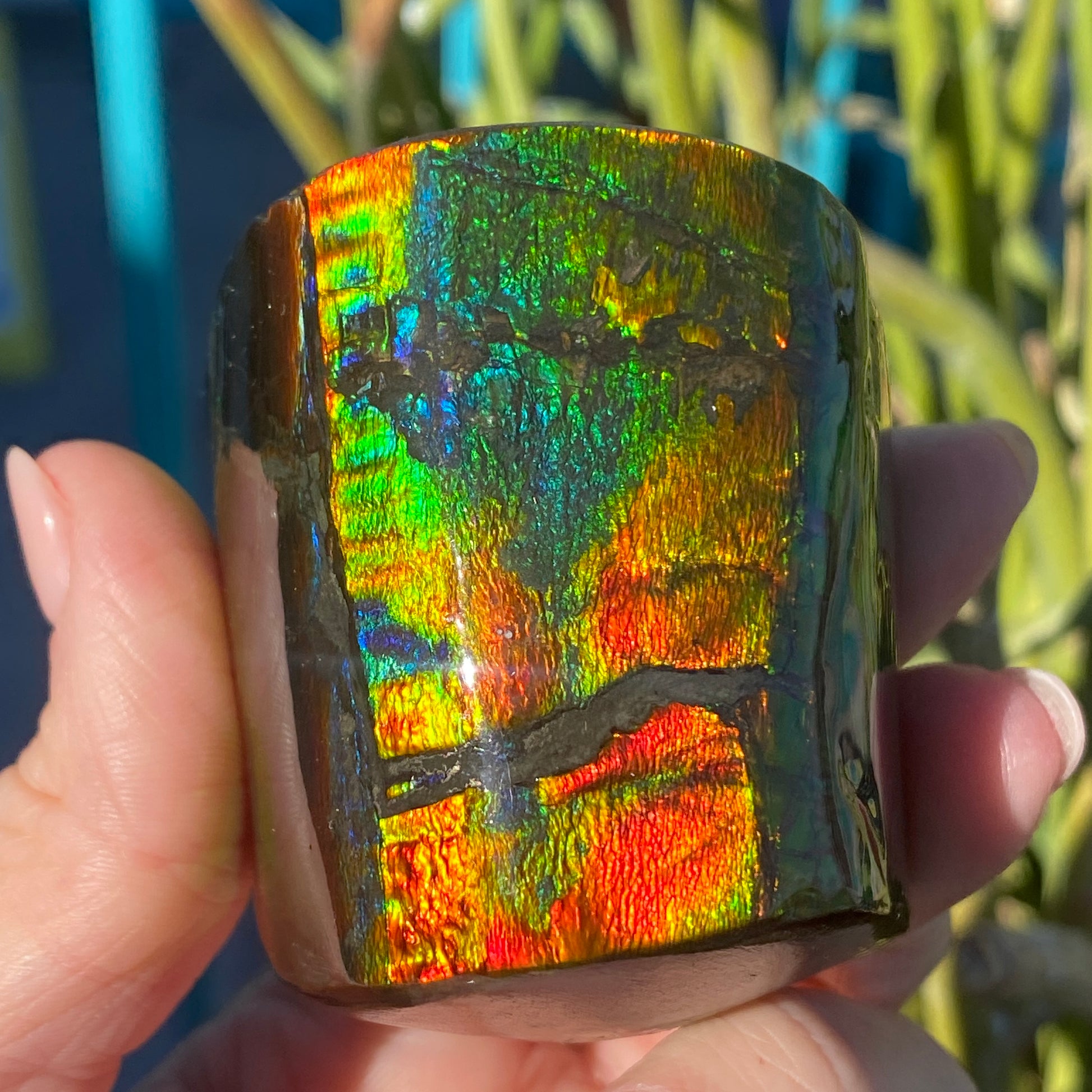 While Ammonites encapsulate the ancient energies of the Earth, Ammolite embodies the essence of the ancient heavens. Mirroring the cosmos, Ammolite is thought to help one connect to the consciousness of the primordial Universe. A stone of perfection and knowledge, Ammolites are used as a tool of transcendence and spiritual enlightenment. The multitude of colors present in Ammolite resonate with all chakras and infuse the aura with healing light.