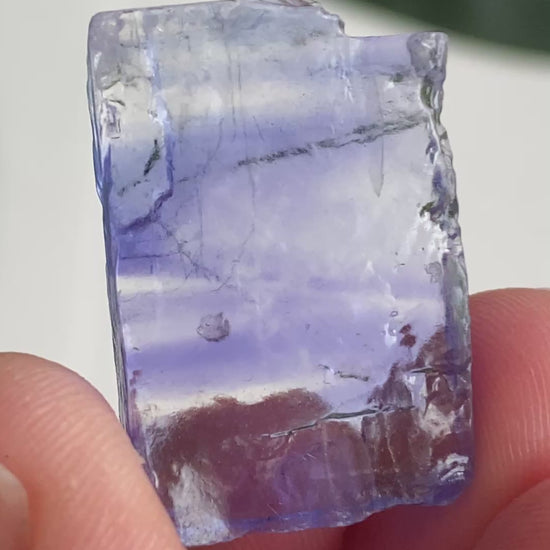 A rare find. This is a natural Blue Halite crystal hailing from Turkey with vivid, almost purple blue color. Totally natural, no finishing. Very nice clarity, color and luster. Hard to find these in good condition. You will receive the exact piece shown. Blue halite is a rare, naturally occurring, and highly sought-after variety of sodium chloride. Natural radiation within the earth causes electrons to be trapped by sodium ions, known as "colloidal sodium". Lustrous, vivid blue specimens are most desirable for collectible purposes. Primarily sourced from Saskatchewan, Germany, and Turkey.