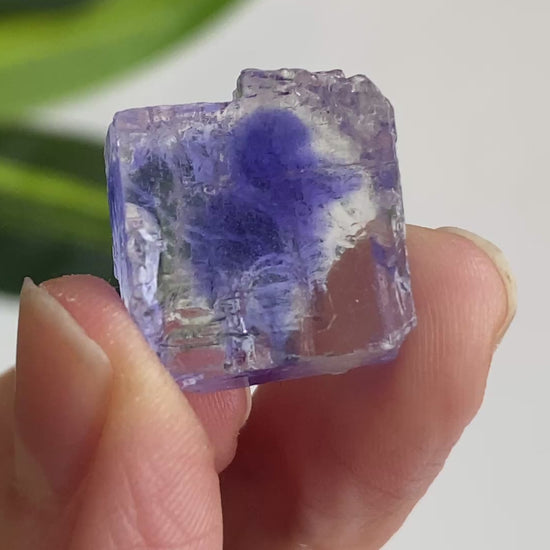 A rare find. This is a natural Blue Halite crystal hailing from Turkey with vivid, electric blue color zoning. Totally natural, no finishing. Very nice clarity, color and luster. Hard to find these in good condition. You will receive the exact piece shown. Blue halite is a rare, naturally occurring, and highly sought-after variety of sodium chloride. Natural radiation within the earth causes electrons to be trapped by sodium ions, known as "colloidal sodium". Lustrous, vivid blue specimens are most desirable for collectible purposes. Primarily sourced from Saskatchewan, Germany, and Turkey.