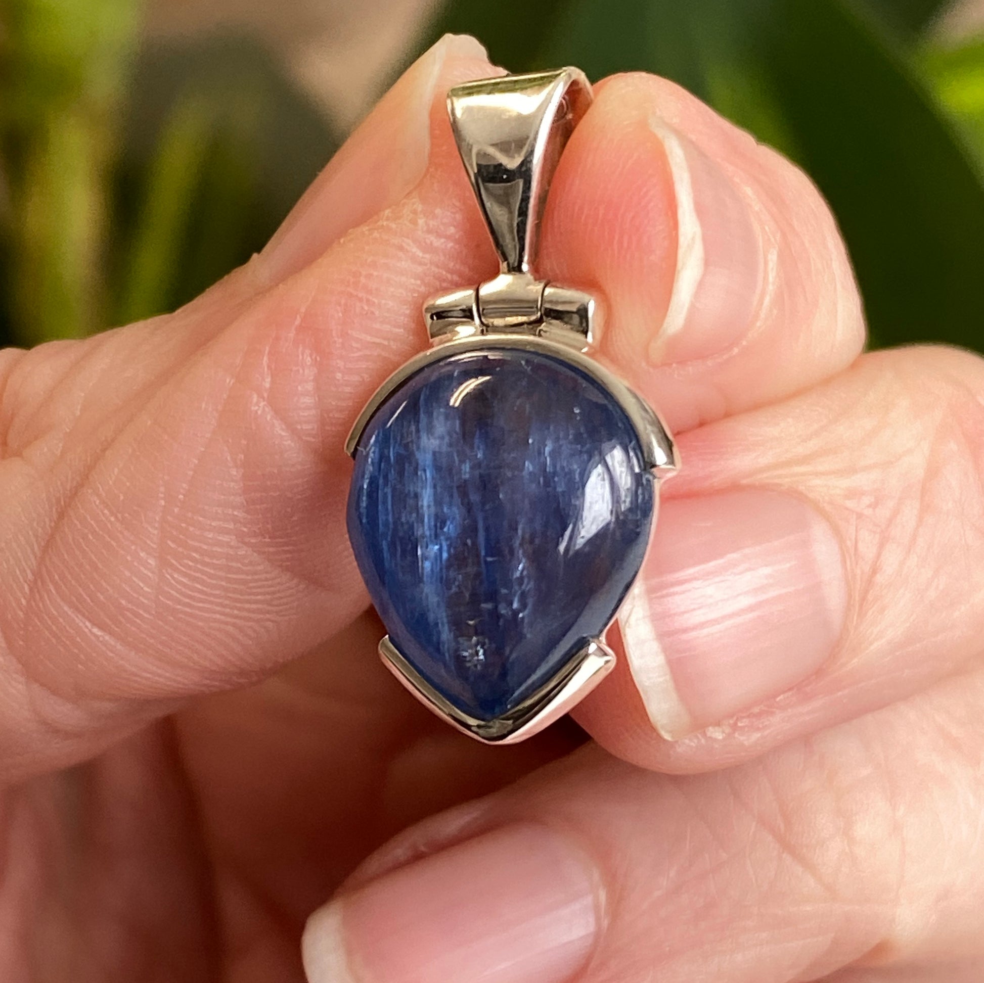 You will receive the exact Kyanite pendant shown. A beautiful, gemmy blue Kyanite stone set in .925 sterling silver. From the Tucson Gem Show 2026. A high vibration stone, Blue Kyanite is one of the few crystals that never needs cleansing and can be used to clear other crystals. Highly sought for metaphysical purposes, Kyanite’s uses are unlimited. It is considered a universal bridge, as its high vibration opens pathways in the mind and allows for the transfer of energy. Kyanite is thought to enhance psychic abilities, expand consciousness and transition one into deep meditative states. Kyanite aligns all chakras of the body, and is particularly good for expanding the third eye chakra and working on the throat chakra.