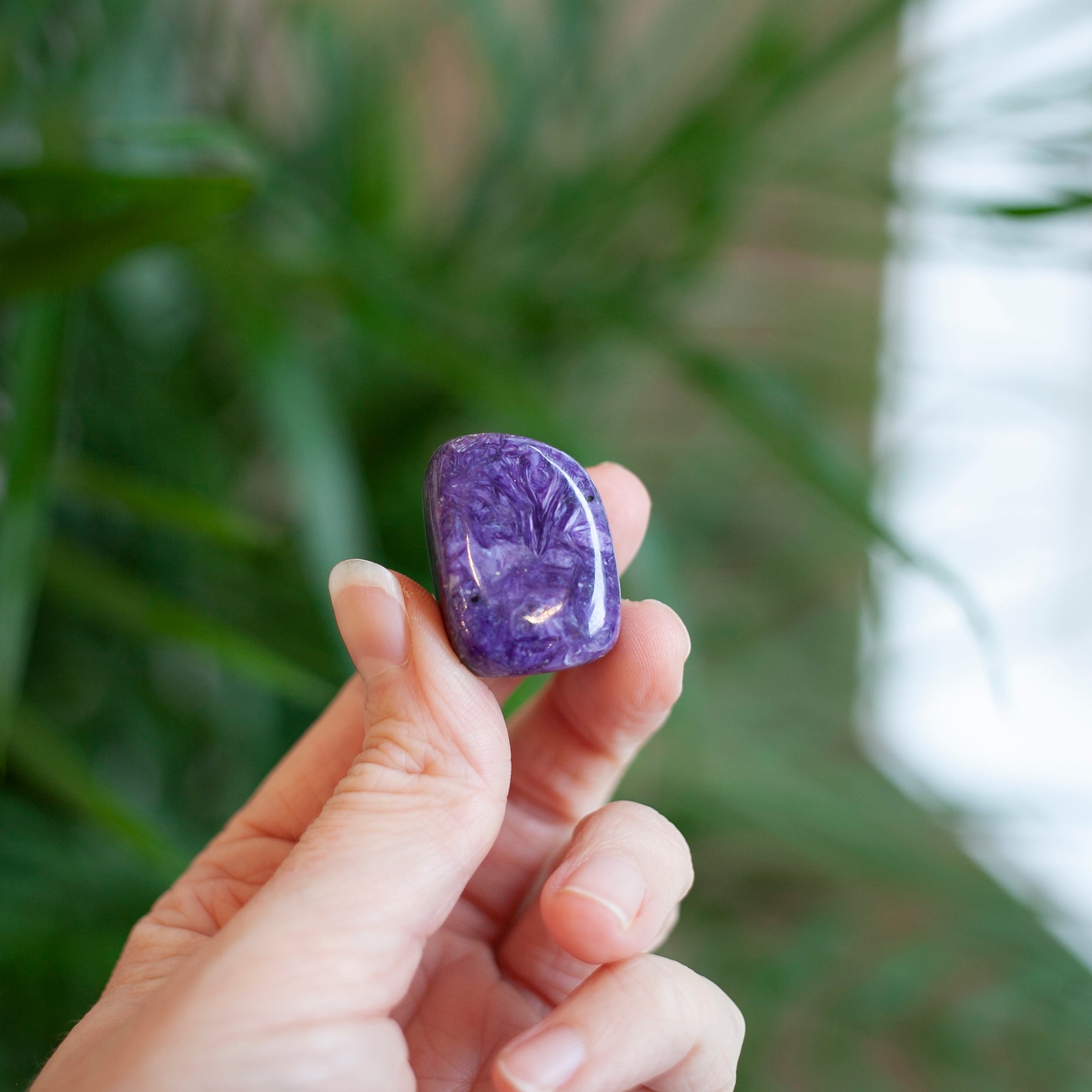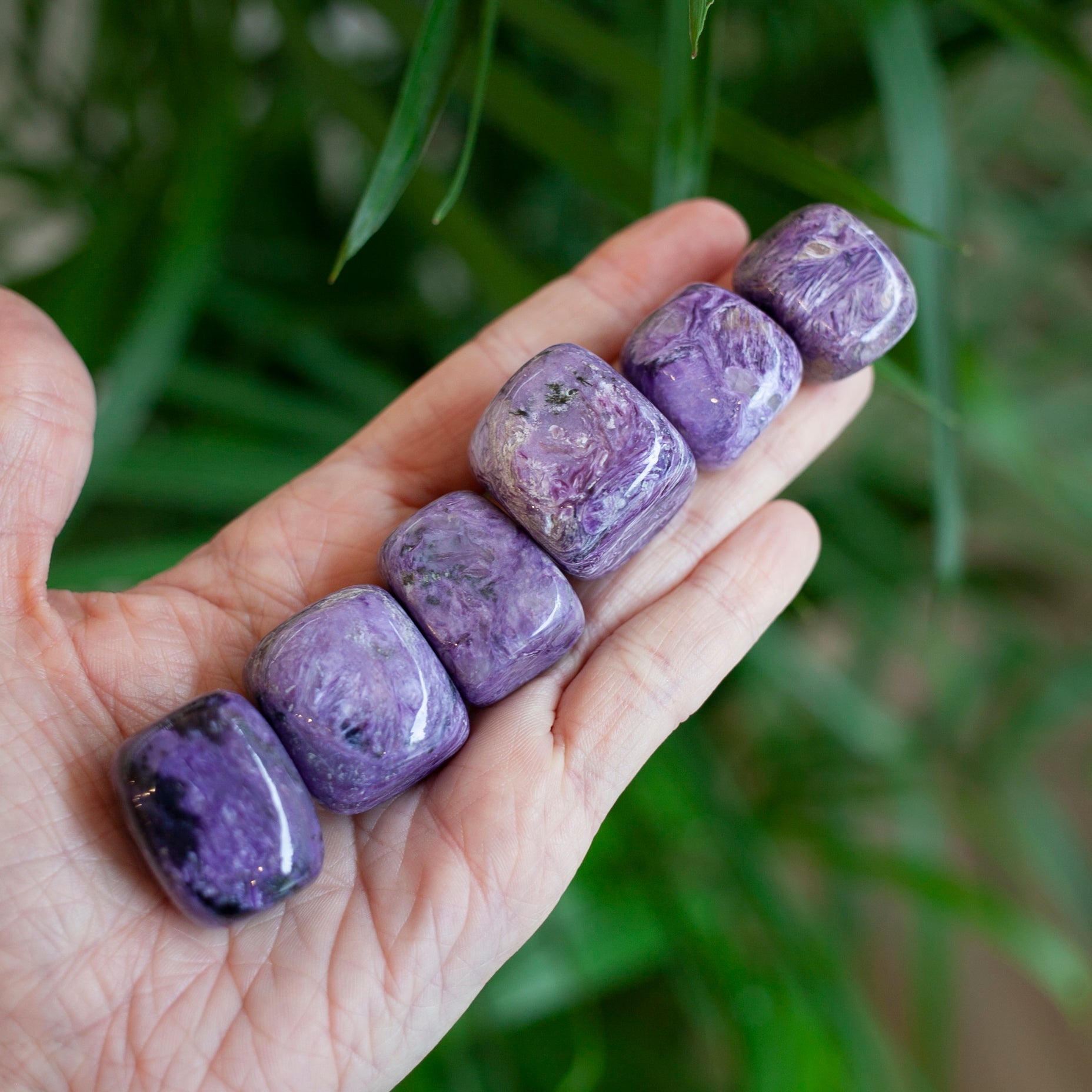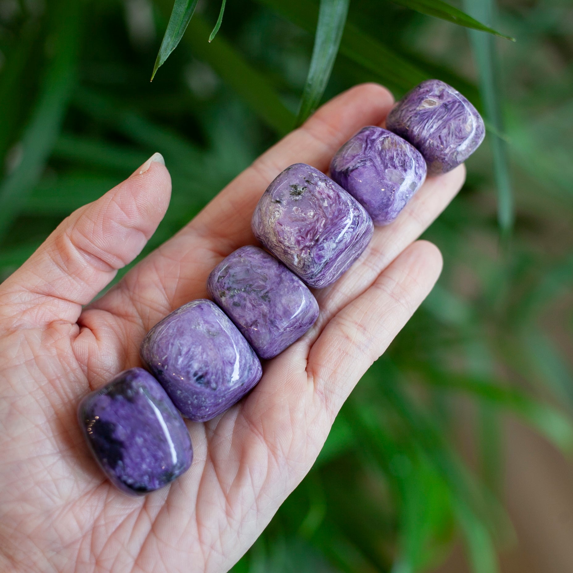 This listing is for one large Charoite tumbled stone with beautiful purple color. Each stone is unique! All of them are natural Charoite and the larger size around 1in. You will receive one Charoit stone like shown and my Charoite meaning card. Metaphysical Properties of Charoite: Emotionally, Charoite is both a protective and an energizing stone for empaths and healers. It motivates us to channel our efforts toward enacting positive change and helping others while assisting us in setting healthy boundaries. Charoite is a stone of inner knowledge, harnessing energies and purifying the etheric body. Popular among healers and psychics, Charoite is thought to help one tolerate high-frequency vibrations and prevent psychic fatigue. Charoite draws on higher frequencies of the Earth's energies, allowing it to be channeled into this realm through the beholder. In general, it assists the flow of energy through the body, removing blockages and preventing overstimulation.