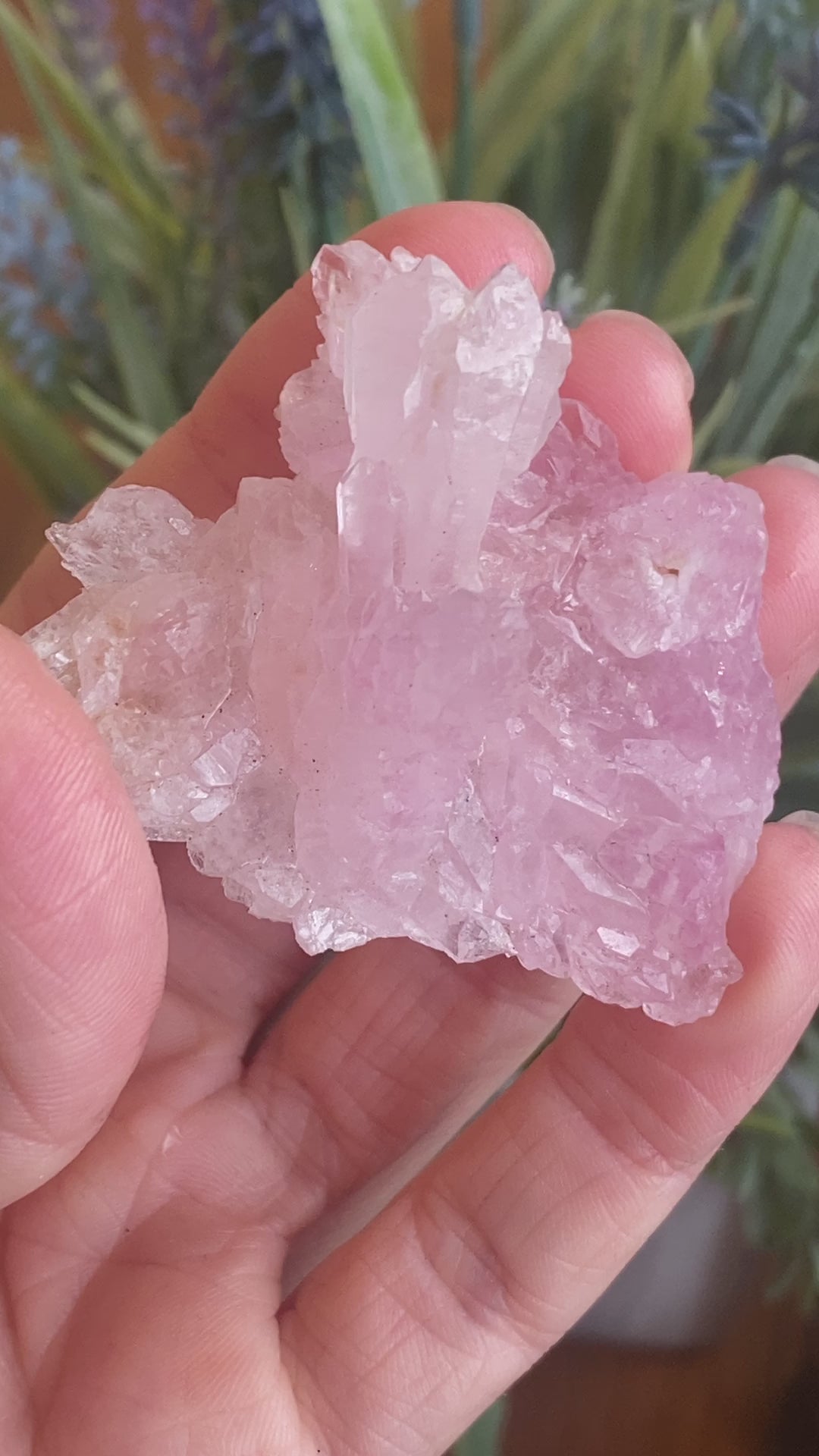 Rare find! This is a crystalized Rose Quartz specimen hailing from Brazil. Crystal size and color is excellent in this piece. It also features an exceedingly rare scepter formation. You will receive the exact Rose Quartz crystal shown. Rose Quartz does not typically form prismatic crystals, and finding well-formed, colorful pieces is exceptionally difficult. Even a specimen with a tiny prismatic crystal is a great find, so pieces with larger formations like this are very scarce.