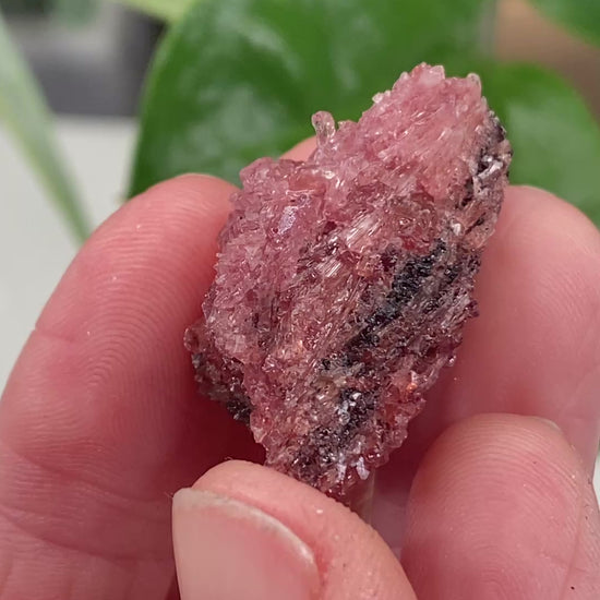 A vibrant, rare mineral specimen, Edenite from Tanzania. The lighter pink crystals are Edenite and the darker red is likely Piedmontite. Found at Mautia Hill in the Dodoma Region of Tanzania. You will receive the exact Edenite specimen shown. Edenite can take on many colors, but the pink variety is a collectible favorite. I first came across this mineral in Tucson and purchased it just because I liked the name, not knowing it was a fairly rare mineral and this was an excellent example of the desirable pink color.
