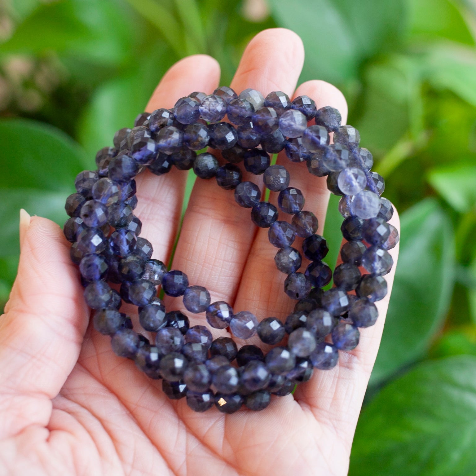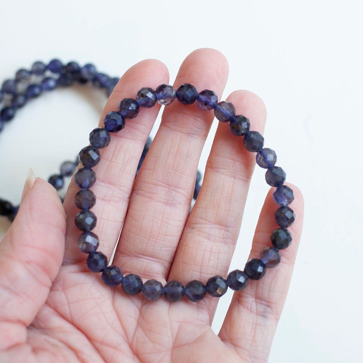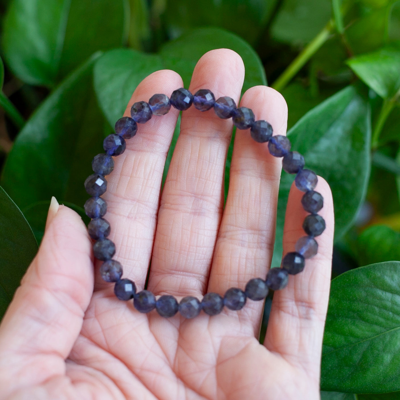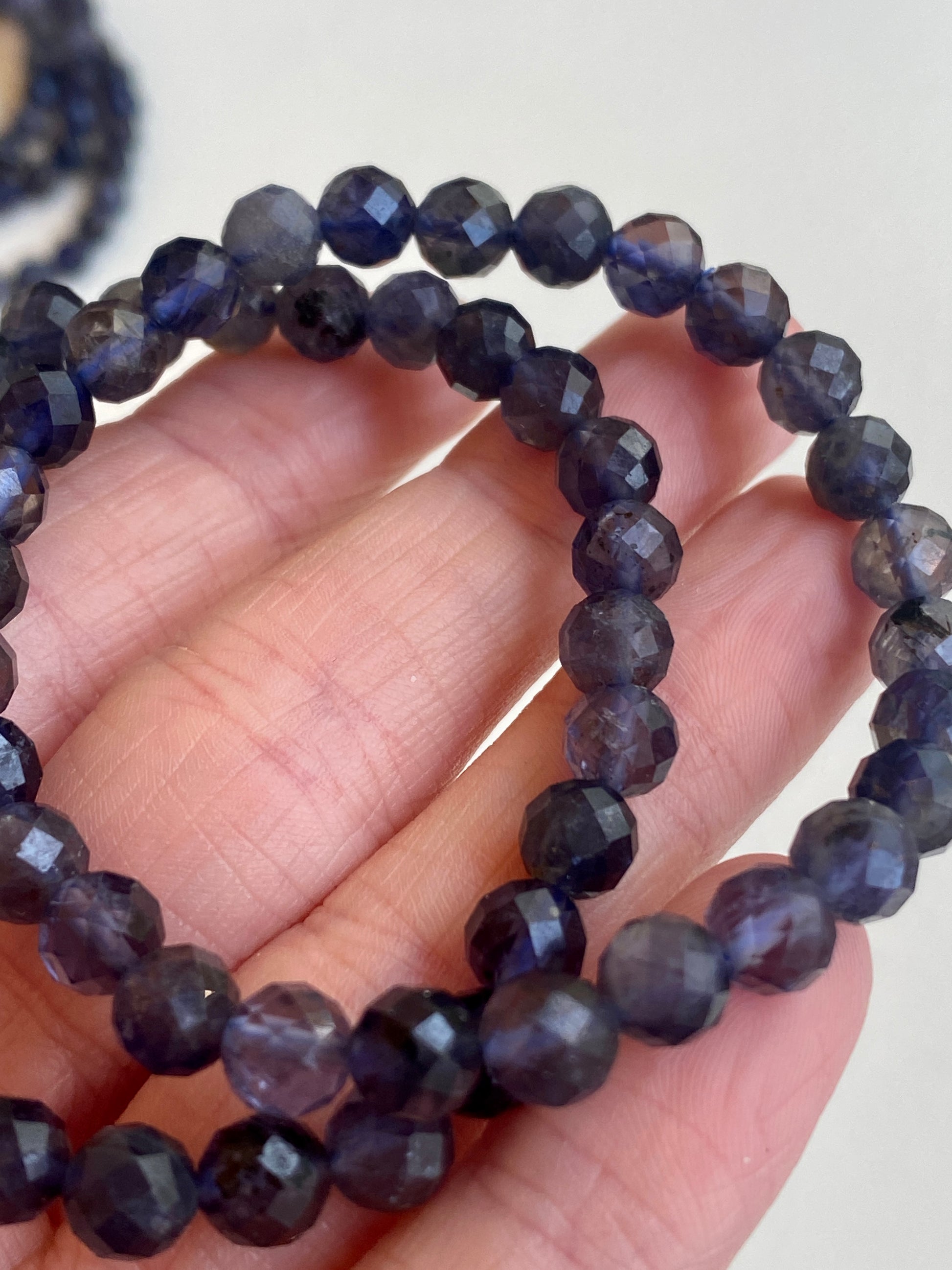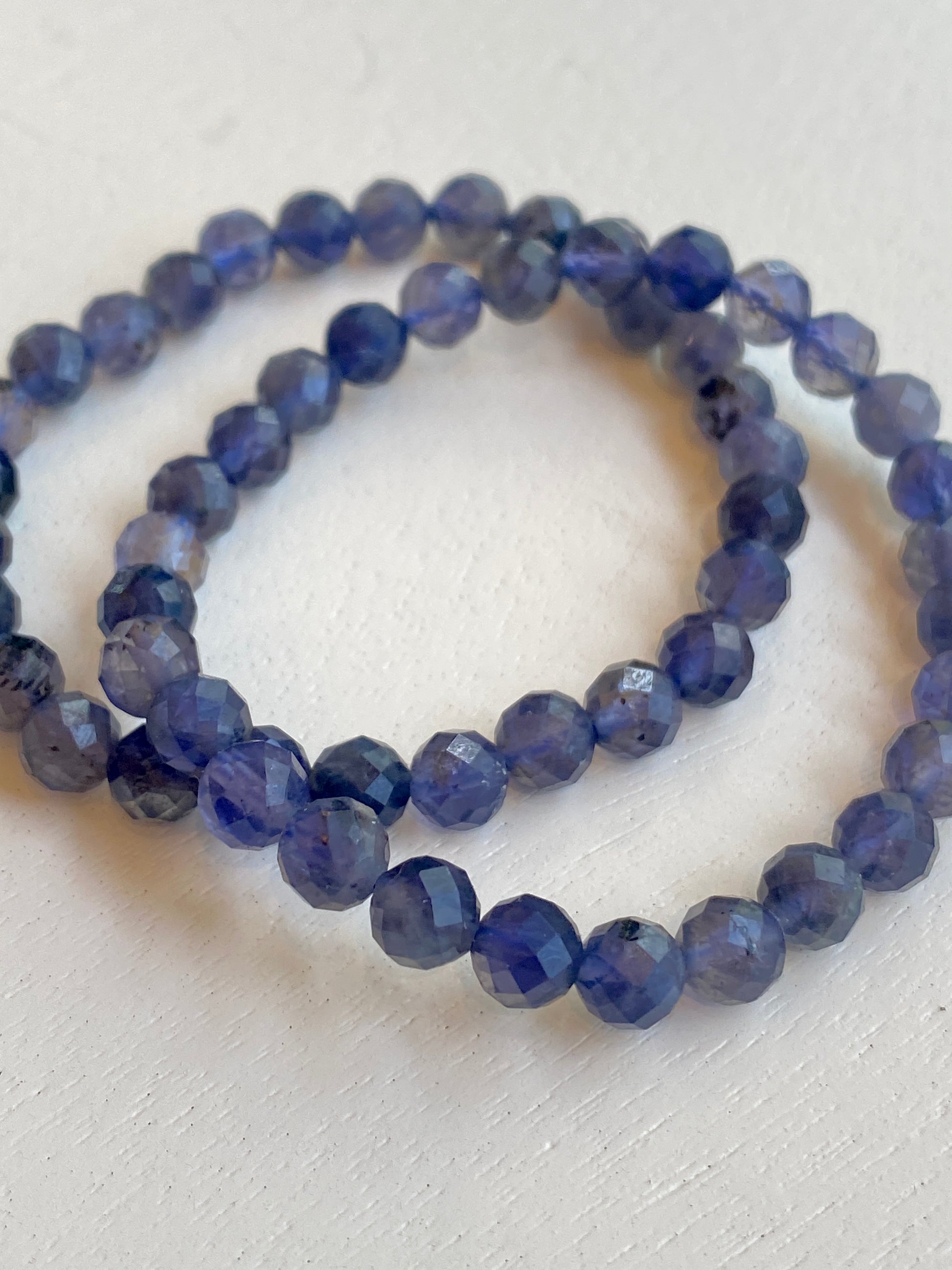 This listing is for one Ilite Bracelet made with beautiful faceted Iolite stones. Iolite is a mineral and gemstone known for its striking blue to violet-blue coloration. It is sometimes referred to as the "water sapphire" due to its resemblance to sapphire. Iolite is a transparent to translucent gemstone and is part of the cordierite mineral family. Iolite also has historical significance in navigation. Vikings are believed to have used thin slices of iolite as a light polarizing filter to determine the exact position of the sun on overcast days, aiding them in navigation at sea. Iolite is appreciated not only for its aesthetic beauty but also for its metaphysical and healing properties. Iolite can enhance intuition, stimulate the Third Eye chakra, and promote clear thinking and decision-making. It is considered a stone of vision and inner exploration, encouraging self-awareness and personal growth.
