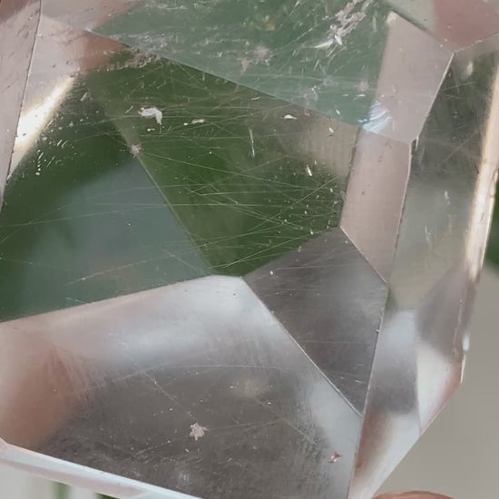 Stunning Silver rutile in Clear Quartz. You will receive the exact Rutile in Quartz shown. Excellent clarity and gem cut enhance the beauty of this unusual specimen. Very fine, 'Angel Hair' silver rutile throughout.