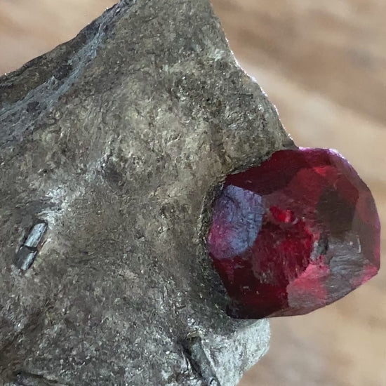 Garnet in Graphite Specimen. This is an unusual find from the Red Embers Mine in Erving Massachusetts. This location is currently only mined by one individual who puts an incredible amount of care into perfectly extracting and cleaning these plates of Garnets. They are Almandine Garnets in a Graphite matrix. When backlit, these glow an awesome red color. Very otherworldly! The miner only does one show per year making availability very limited. A one-of-a-kind and collectible find!