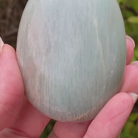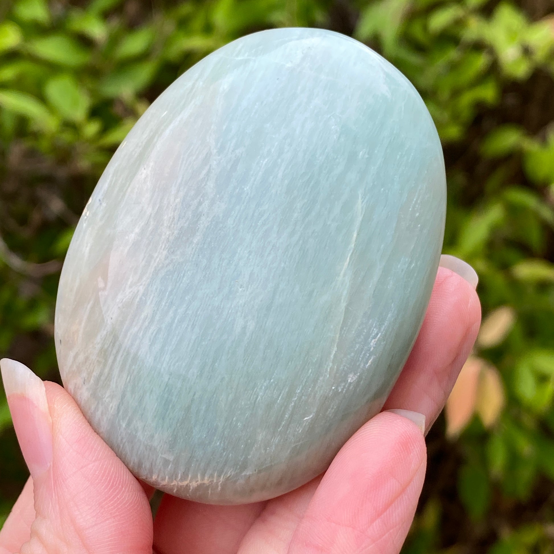 This is Garnierite Palm Stone with soft green color and organic shape. Hand cut and polished from natural Garnierite. You will receive the exact Garnierite palm stone shown. Garnierite hails from Madagascar and is also known as Green Moonstone.