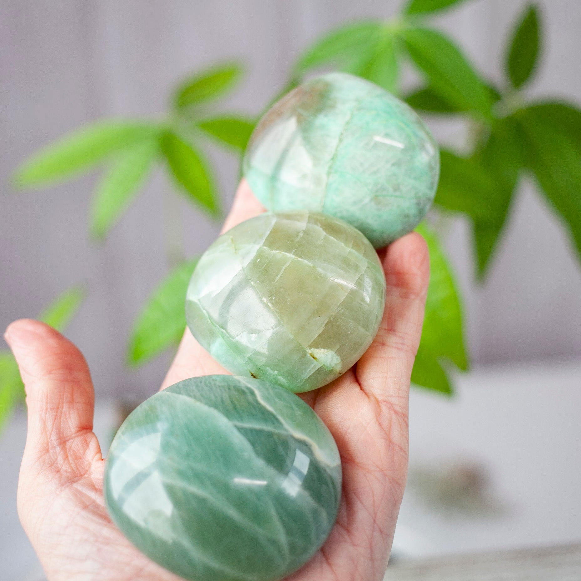 This listing is for one Garnierite palm stone with a range of beautiful green colors and a plump, rounded shape. Garnierite is also known as green moonstone. A stone of the earth and heavens, Garnierite strikes a unique balance of grounding properties and ethereal connection. It is grounding and sparks creativity and ingenuity. Garnierite is also considered a stone of serendipity or ‘luck’ bringing positive change and growth. Garnierite taps into the Universe’s most essential energies. It is powerfully connected to the ancient Earth and the cosmos. It embodies a fascinating balance of energies that seem to grow and evolve as the stone is held. It offers a sense of safety and peace while igniting the creative mind and a sense of wonder.
