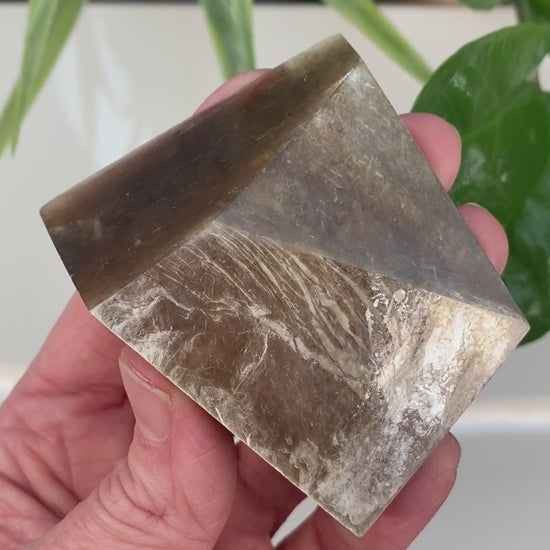 Beautiful, uncommon Gold Mica with silvery-blue flash like a moonstone. These are gem quality, meaning the layers of Mica are fine enough and tightly spaced so that it appears translucent when backlit. You will receive the exact Gold Mica shown. Mica is a lustrous, shimmering mineral with a variety of uses. Associated with abundance, confidence, and manifestation. Mica encourages self-reflection, emotional balance, and spiritual growth. Beneficial to all chakras.