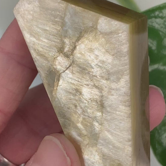 Beautiful, uncommon Gold Mica with silvery-blue flash like a moonstone. These are gem quality, meaning the layers of Mica are fine enough and tightly spaced so that it appears translucent when backlit. You will receive the exact Gold Mica shown. Mica is a lustrous, shimmering mineral with a variety of uses. Associated with abundance, confidence, and manifestation. Mica encourages self-reflection, emotional balance, and spiritual growth. Beneficial to all chakras.