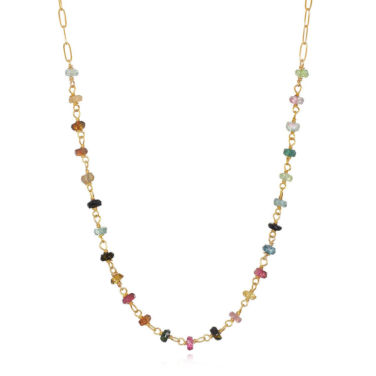 Gold Paperclip Necklace with Pink and Green Tourmaline, Amelia Rose Jewelry