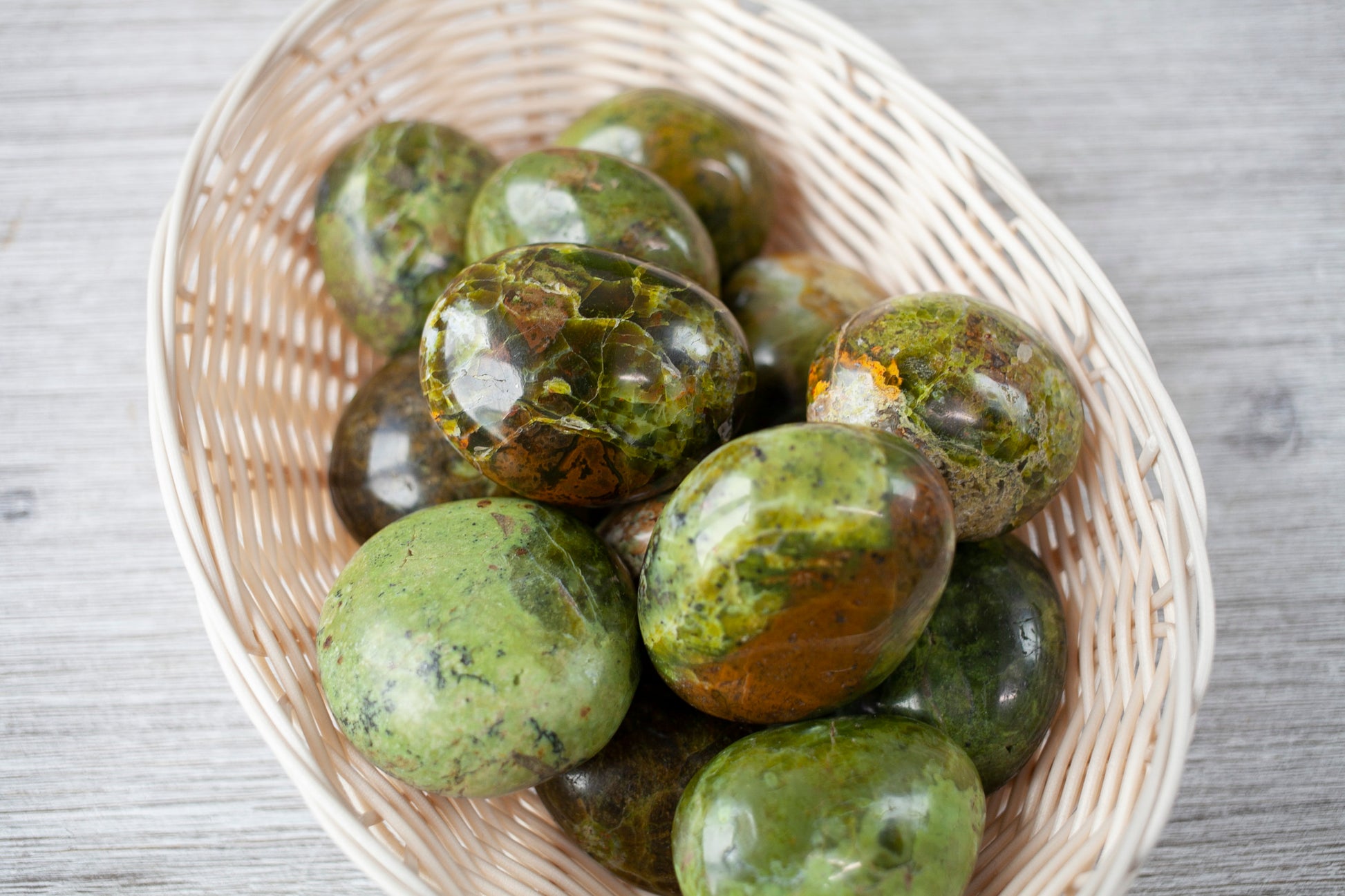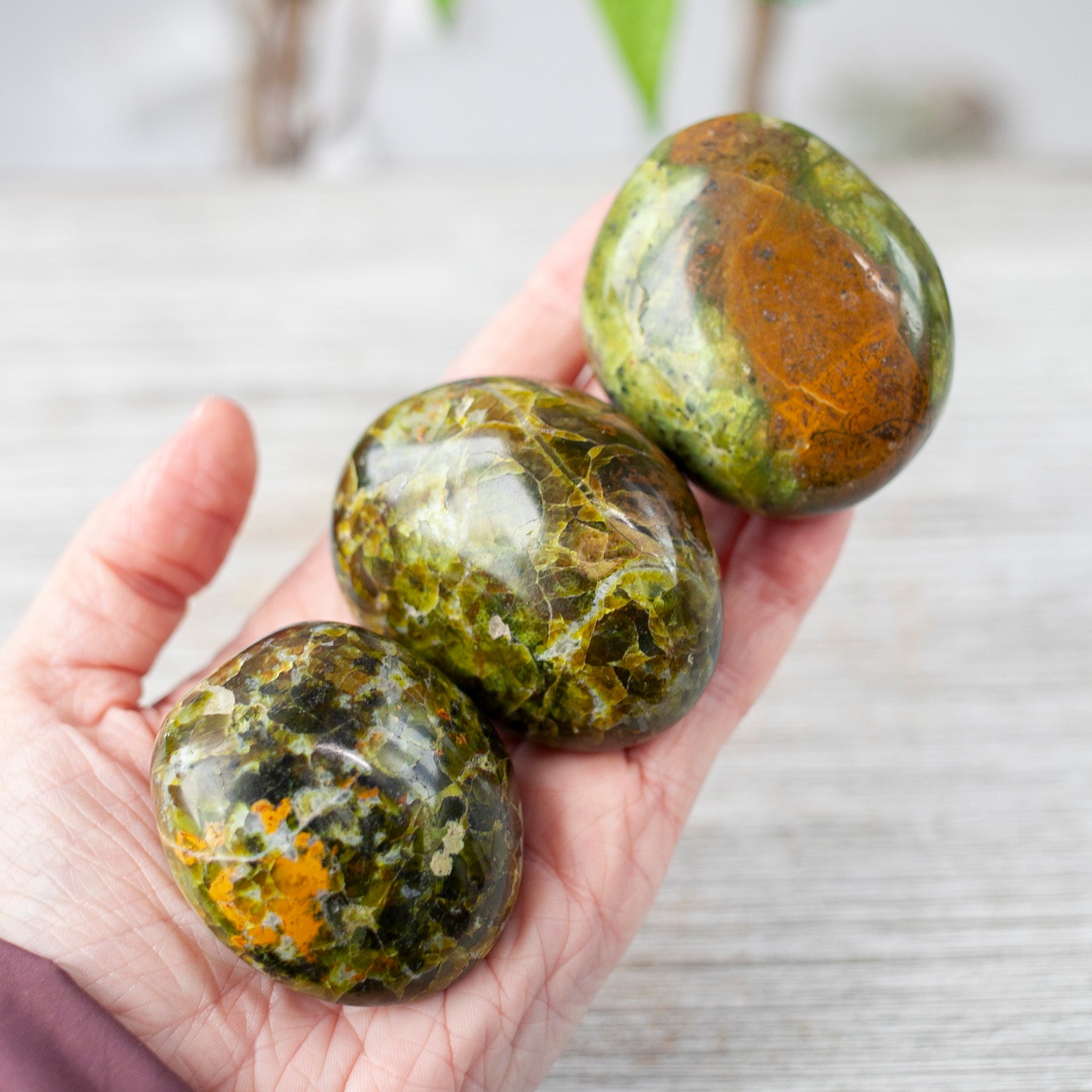 Green Opal Palm Stone - this listing for one, beautiful Green Opal Palm Stone. These are very unique looking Green Opal Stones with vibrant, leafy green colors and wild patterns each stone is unique! Includes my green opal meaning card. Metaphysically, Green Opal is considered a cleansing and rejuvenating stone; harnessing both Wood and Water energies, Green Opal is a stone for cleansing energy and supporting health, prosperity, and abundance. Green Opal Has Natural Texture.