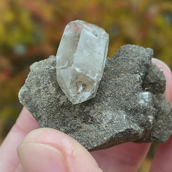 Very nice Herkimer Diamond in Matrix. These are perfectly intact Herkimer Diamond crystal in the natural matrix. Perfect little specimen! This is some older stock I got from the person who collected them at Ace of Diamonds in Middlefield, NY. A great deal for such a lovely piece. You will receive the exact crystal shown. The matrix is lovely too, with fine second-generation quartz growth and some tiny Herkimers.