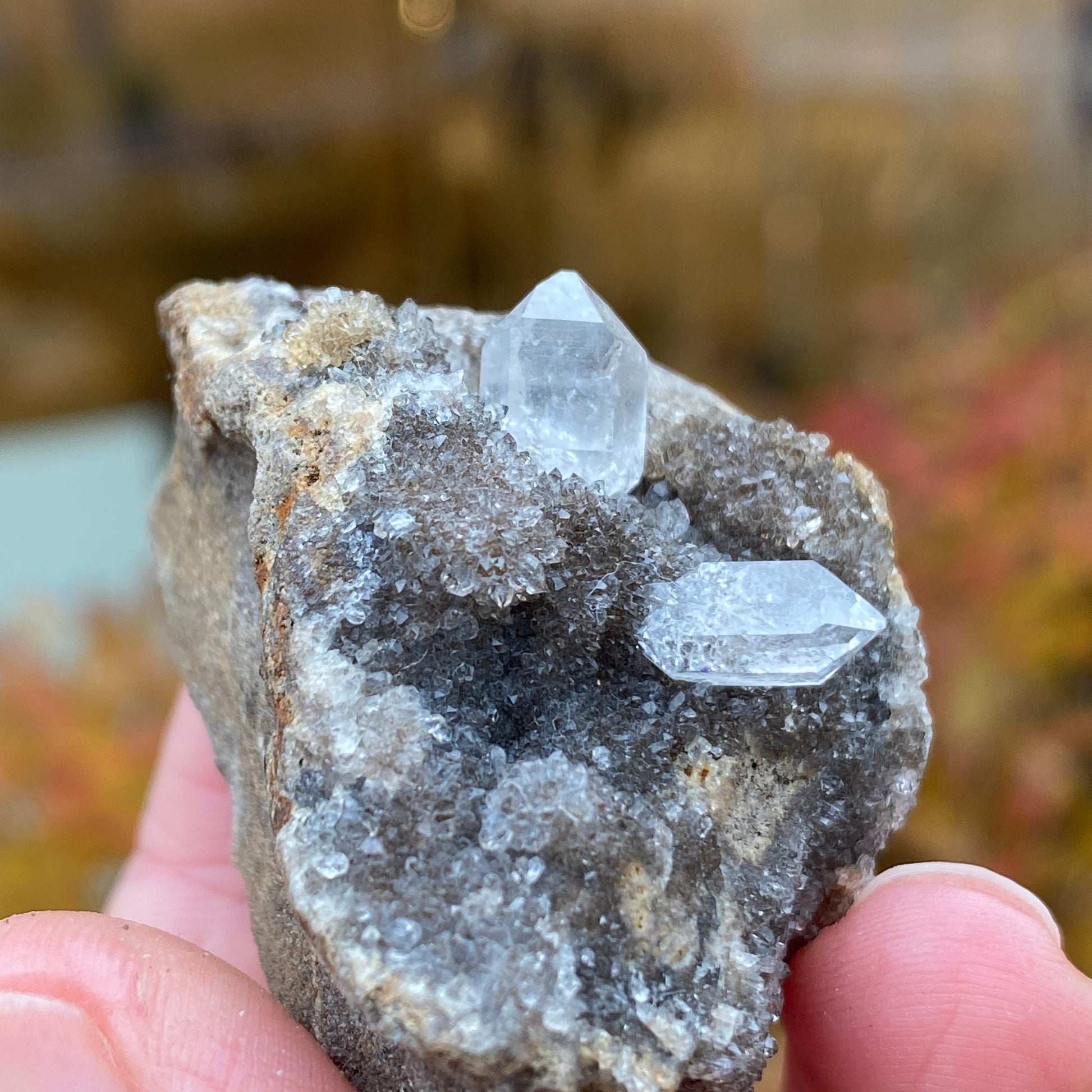 Very nice Herkimer Diamond in Matrix. These are perfectly intact Herkimer Diamond crystal in the natural matrix. Perfect little specimen! This is some older stock I got from the person who collected them at Ace of Diamonds in Middlefield, NY. A great deal for such a lovely piece. You will receive the exact crystal shown. The matrix is lovely too, with fine second-generation quartz growth and some tiny Herkimers.