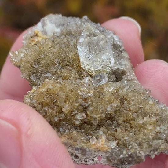 Very nice Herkimer Diamond in Matrix. These are perfectly intact Herkimer Diamond crystal in the natural matrix. Perfect little specimen! This is some older stock I got from the person who collected them at Ace of Diamonds in Middlefield, NY. A great deal for such a lovely piece. You will receive the exact crystal shown. The matrix is lovely too, with fine second-generation quartz growth and some tiny Herkimers.