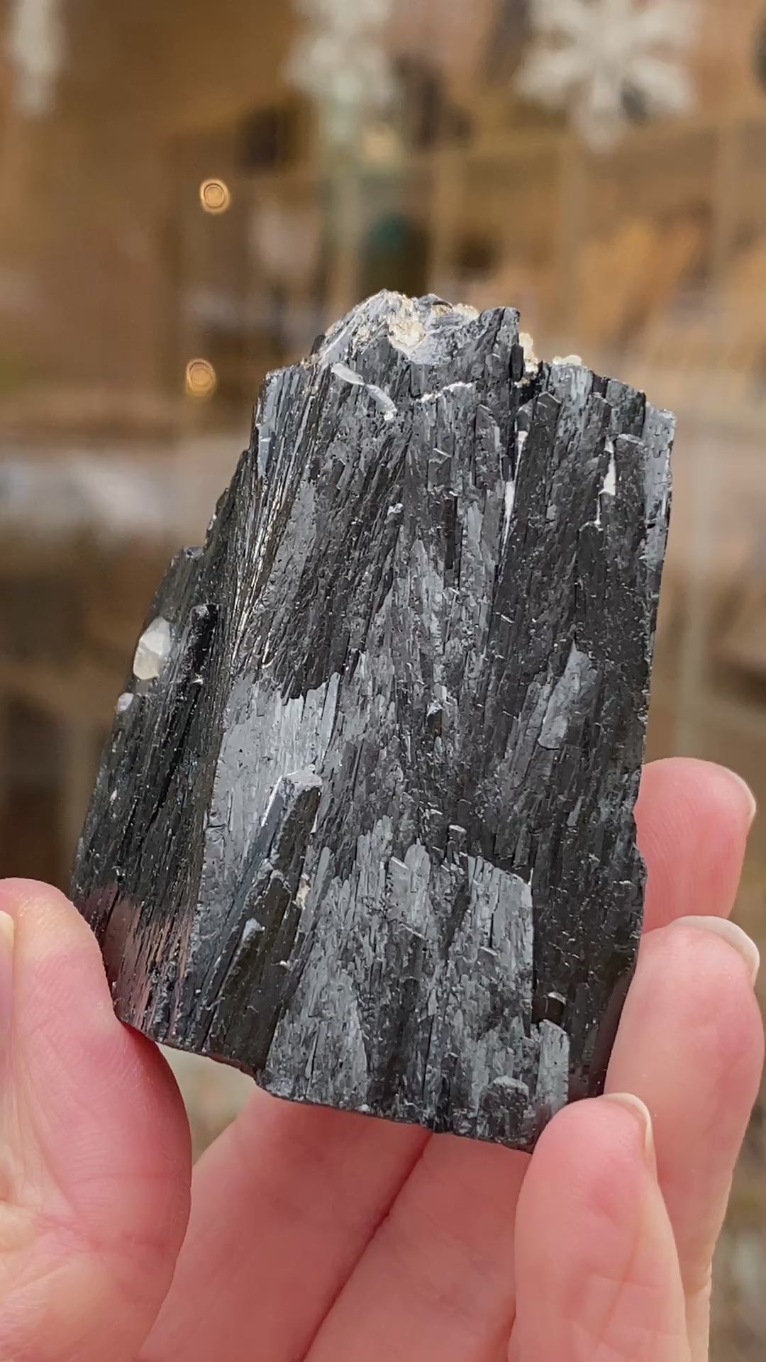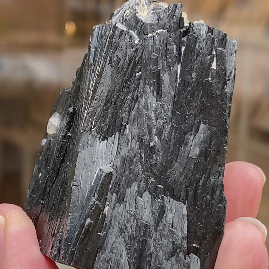 This is a lustrous Ilvaite mineral specimen hailing from the Huanggang Mines of Inner Mongolia. Large size for this material and in excellent condition. Nice aesthetic. A valley of young Ilvaite with what might be Sphalerite runs through the middle. You will receive the exact Ilvaite shown. Ilvaite is a rare black silicate mineral with unique electrical properties. A lovely specimen for collectors looking for less common black crystals to work with.