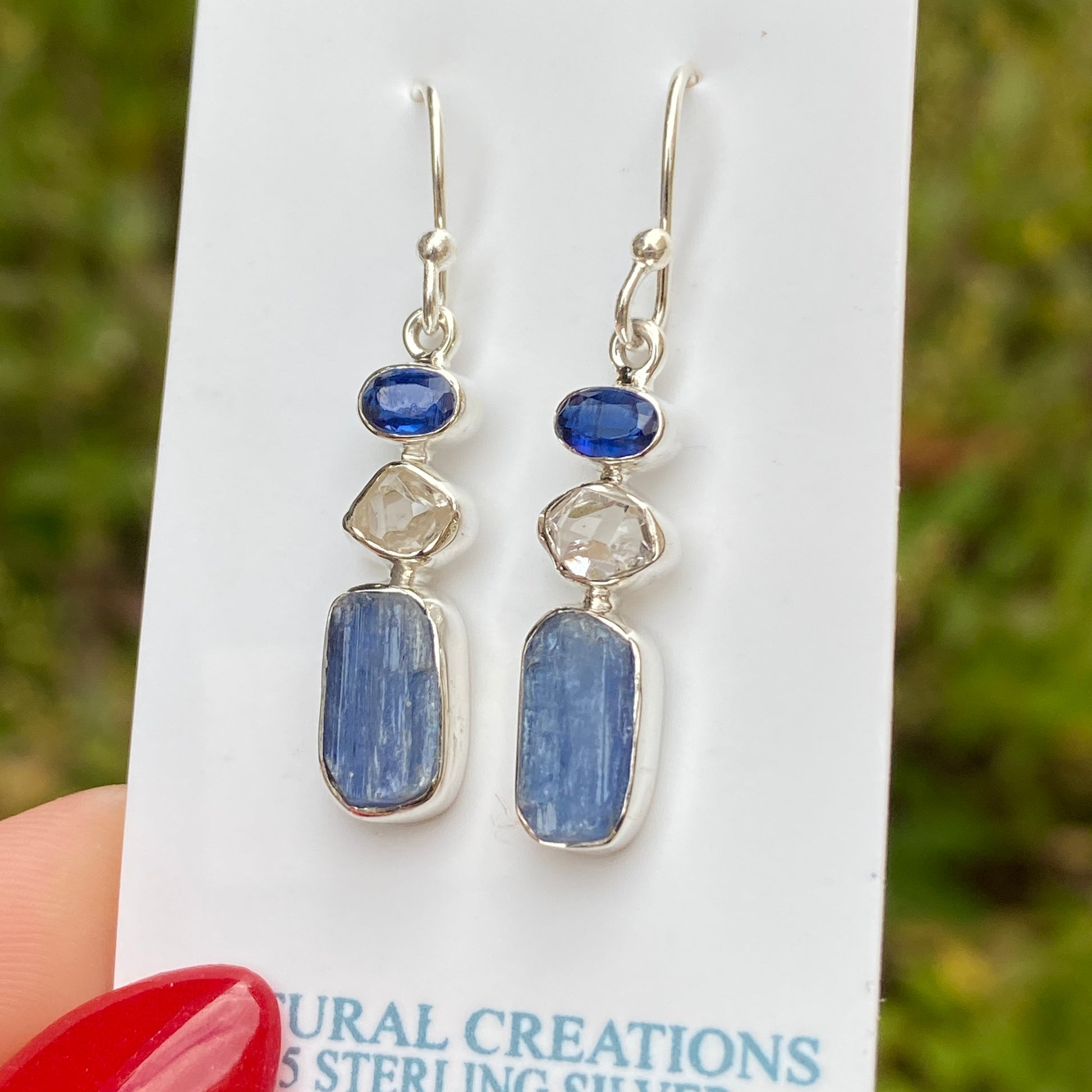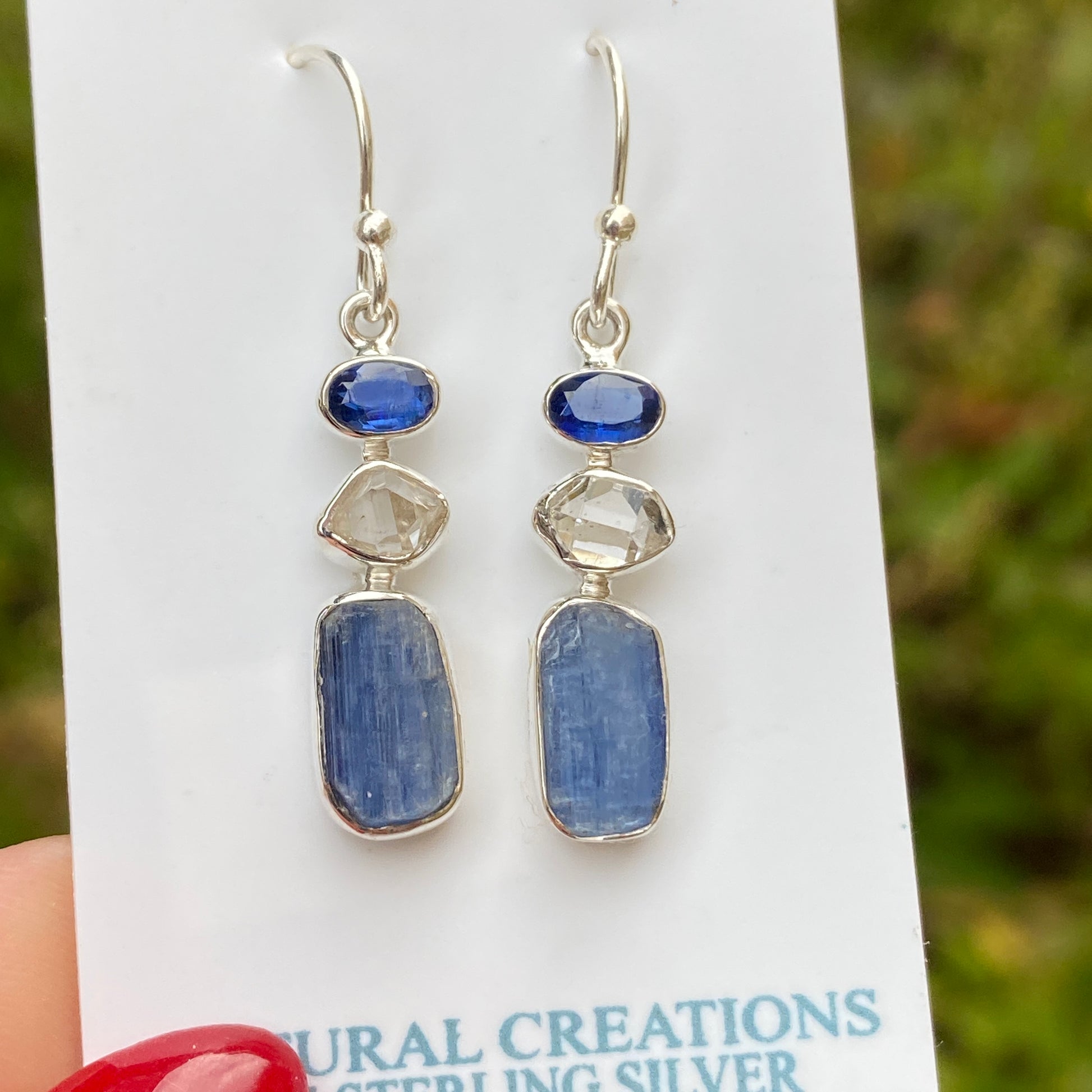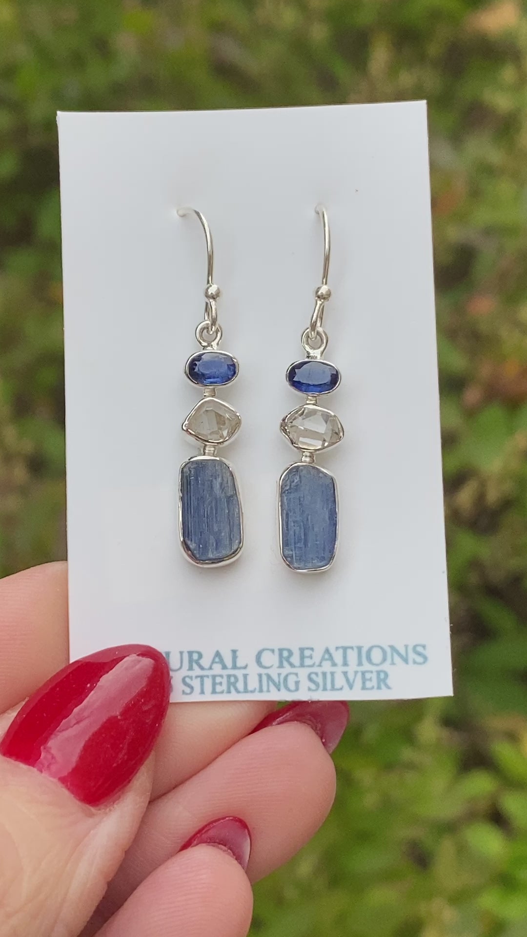 Kyanite, Herkimer Diamond Earrings .925 Sterling Silver