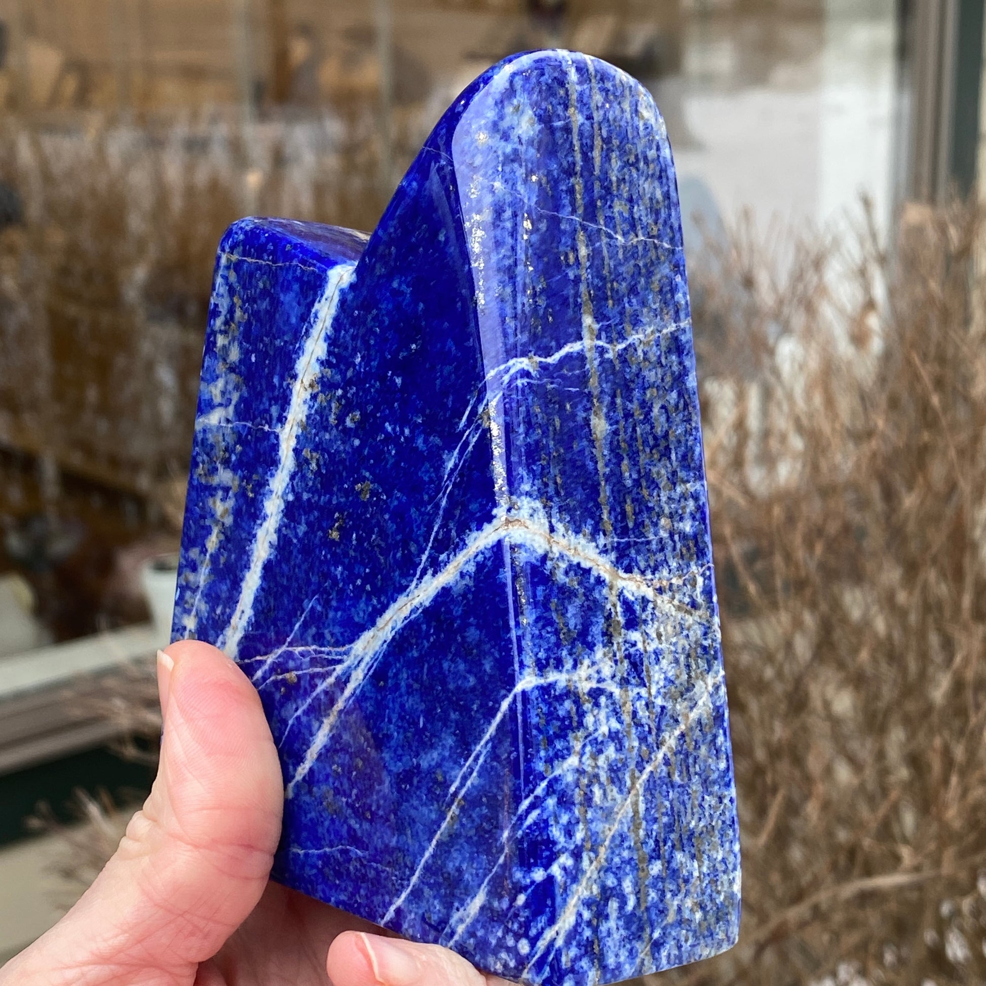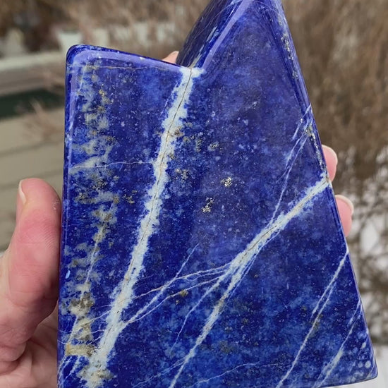 This is a large Lapis Lazuli freeform with royal blue color and hints of Pyrite. Cool mountain shape. You will receive the exact Lapis shown. From the Tucson Gem Show 2026.