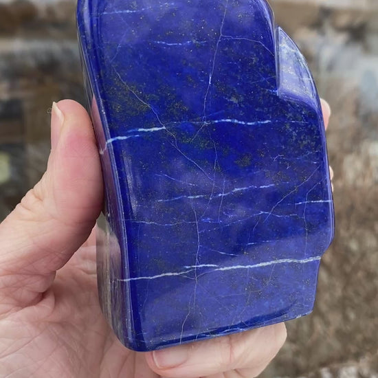 This is a large Lapis Lazuli freeform with royal blue color and hints of Pyrite. A nice even shape, a thick stable cut with banding around the edges. You will receive the exact Lapis shown. From the Tucson Gem Show 2026. Great price for this quality.