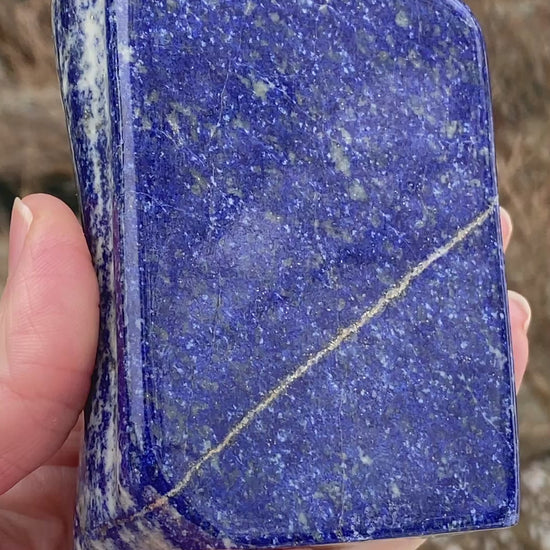 This is a large Lapis Lazuli freeform with royal blue color and hints of Pyrite. A great, symmetrical shape for display. You will receive the exact Lapis shown. From the Tucson Gem Show 2026. Great price for this quality.