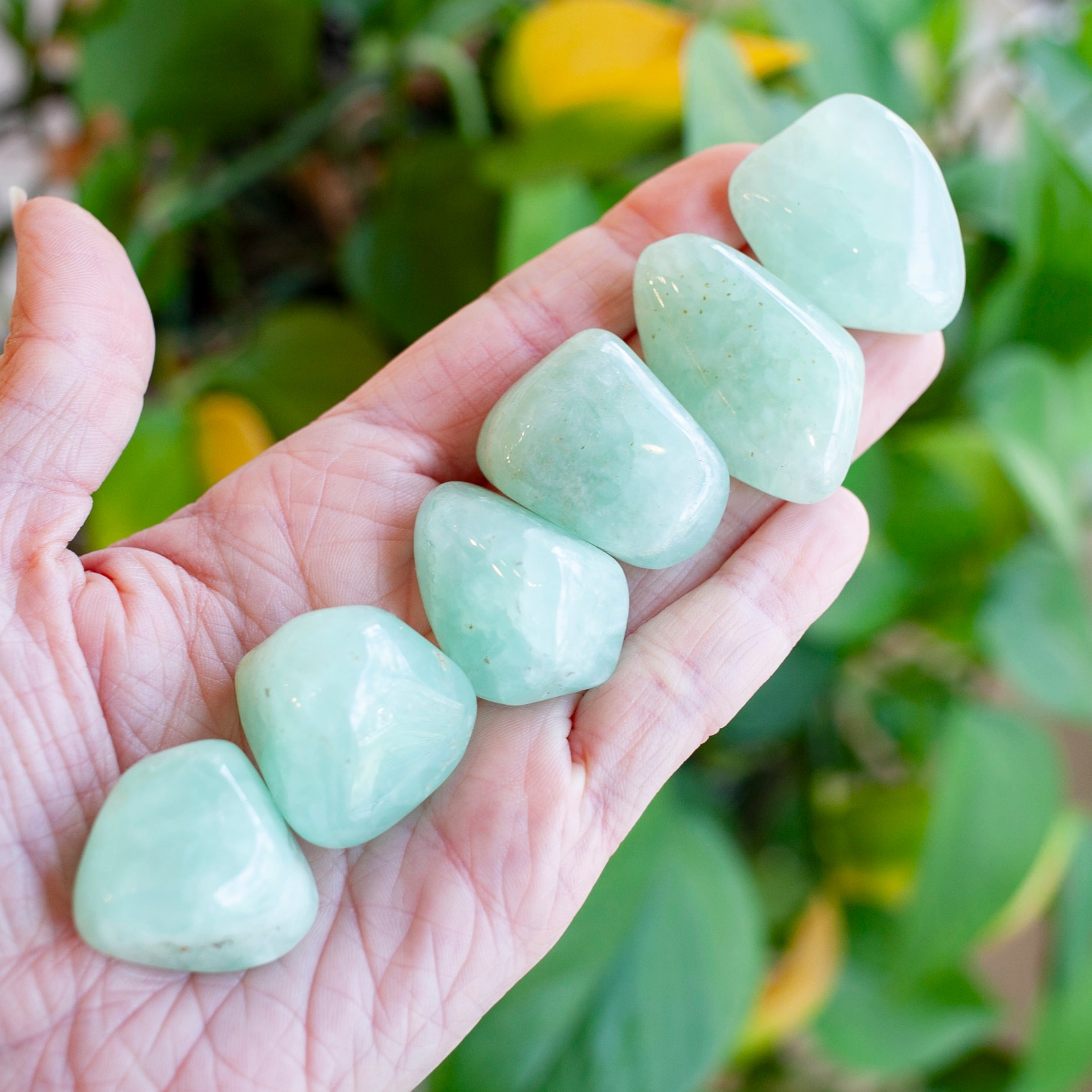 Beautiful, large Prehnite stones with a pistachio green color. These Prehnite stones are light, glowy green and measure between 1in and 1.25in long. They have a flowing shape and retain some natural texture. Includes my Prehnite meaning card. You will receive 1 Prehnite stone like the ones shown. The perfect stone for healers, manifestation, prophecy and abundance. Prehnite is a lovely light green crystal that inspires creativity and is a wonderful stone for intuitives and attracting positive energy. Prehnite is known as the Stone of Prophecy as it was a common tool for South African shamans used to enhance future sight and deepen meditative states. It is thought to enhance one's connection to universal truths and fill one with a sense of abundance. There is no green quite like Prehnite! it brings a sense of lightheartedness and positive motivation, without feeling stressed.