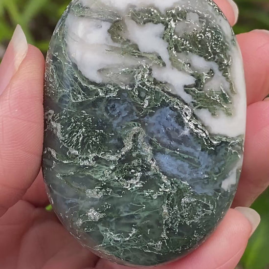 Moss Agate embodies mother nature and draws upon the Earth's energies to restore the mind & body. It is a stone of new beginnings and gives us confidence in new environments. A powerful stone to keep by your side. Moss Agate is a stone of abundance, prosperity, and growth. It attracts wealth and success while fostering emotional balance, optimism, and harmony with nature.