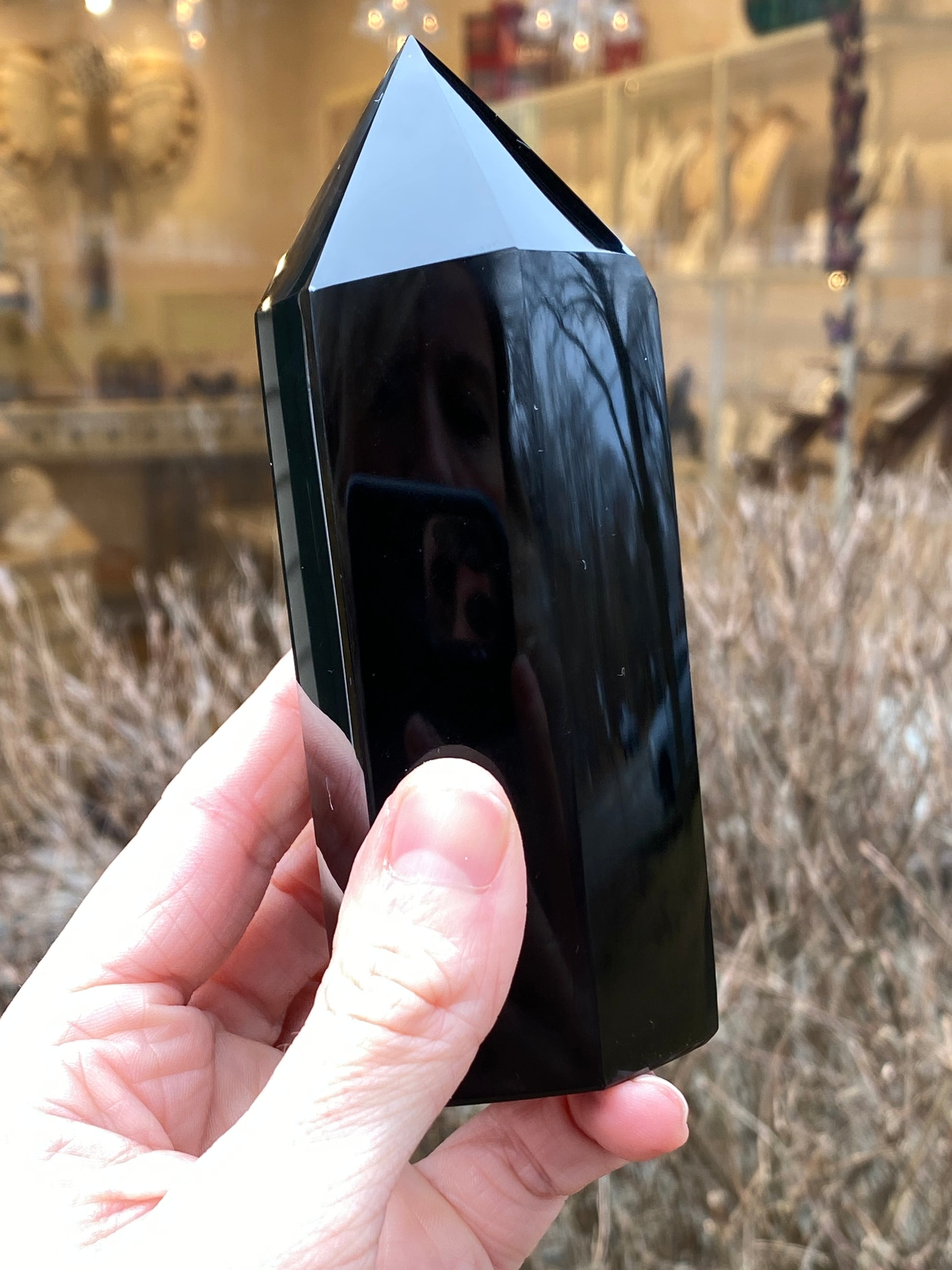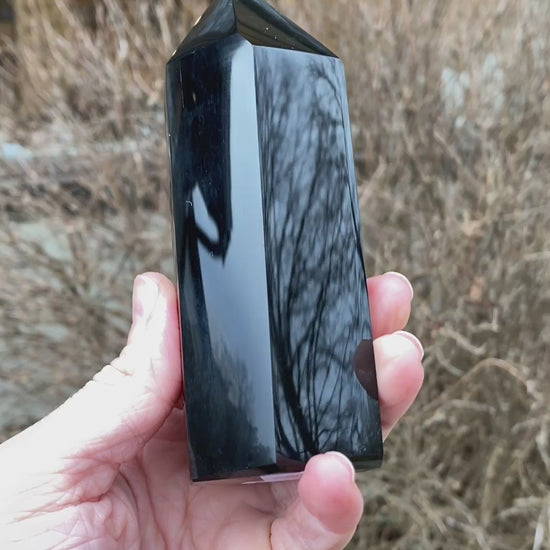 Natural Black Obsidian Tower