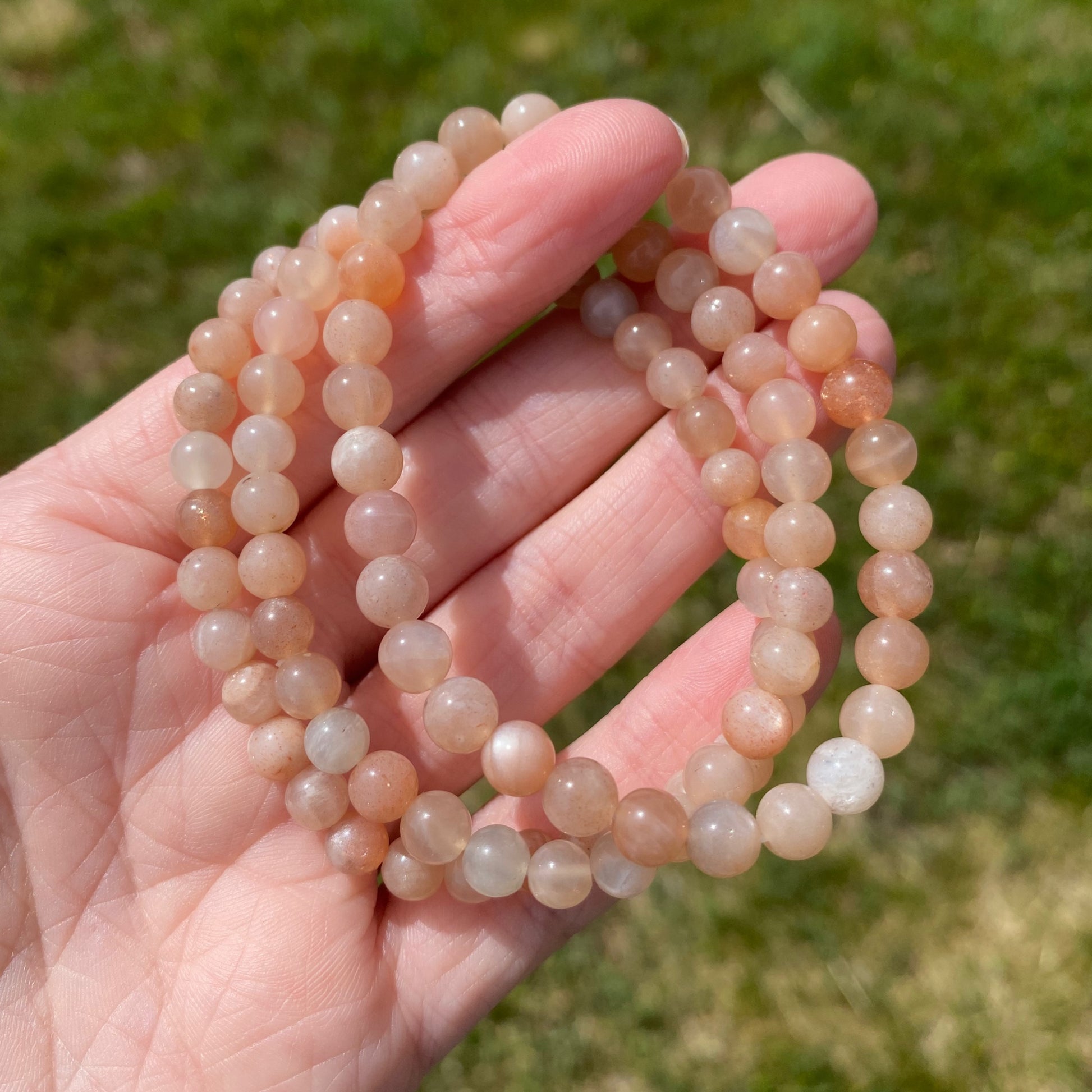This listing is for one gorgeous peach Moonstone bead bracelet with wonderful color and sheen. Moonstone is a stone of divine guidance and intuition. Like the moon itself, Moonstone lights our path and reveals both obstacles and opportunities that lay ahead. Where the Moon acts as a mirror, reflecting the sun’s light, Moonstone reflects our own light within. It deepens our understanding of ourselves and our motivations. Moonstone is considered ideal for new beginnings because it both guides us towards our best path and helps inspire us to make our first move with confidence.