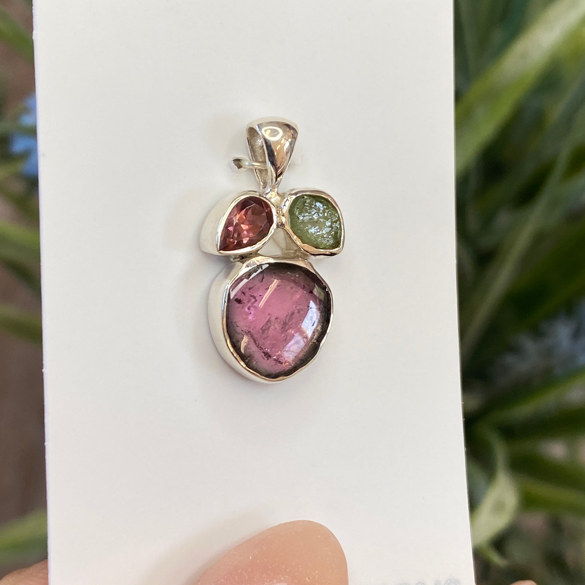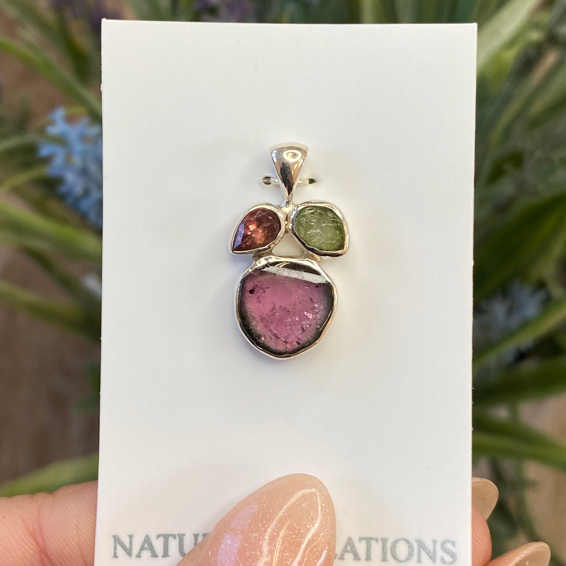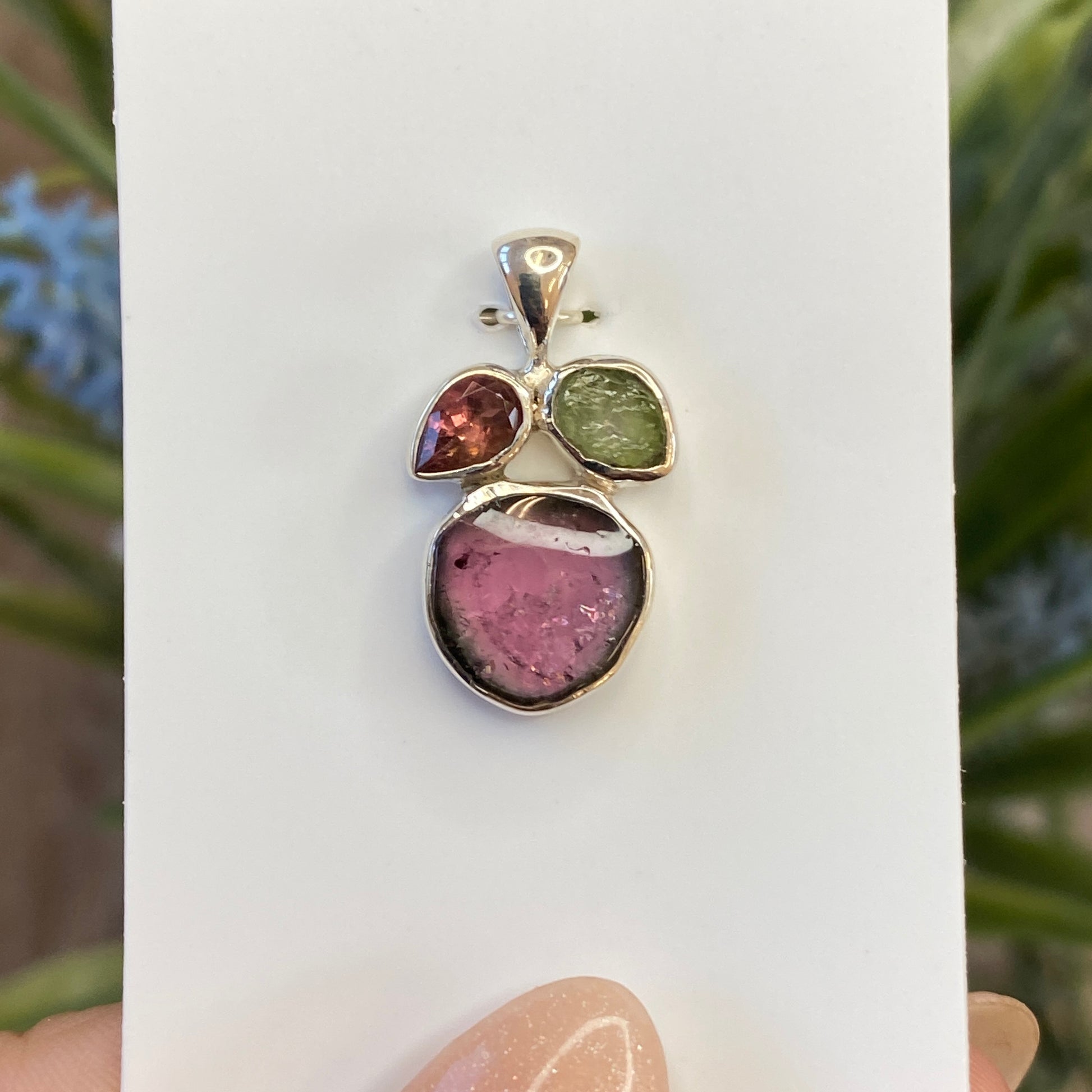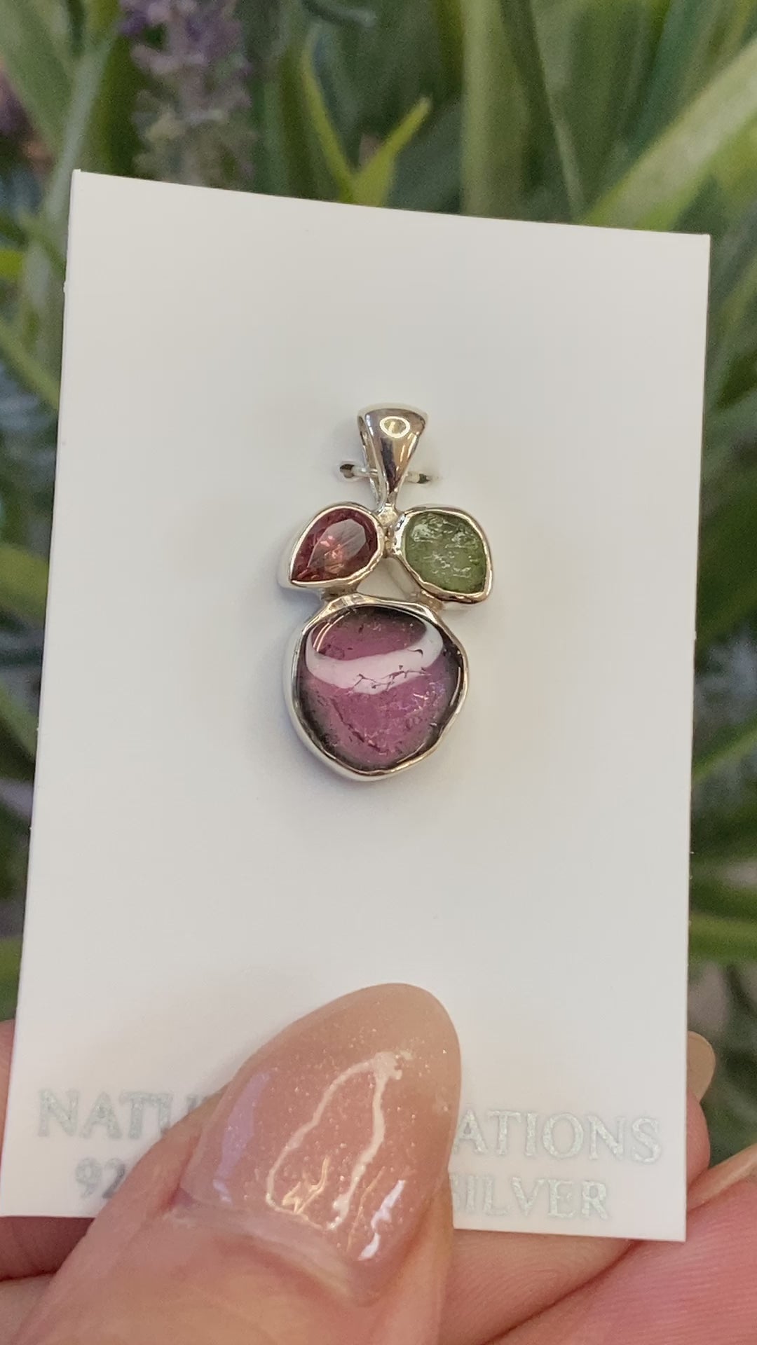 Watermelon Tourmaline Pendant, .925 Sterling Silver