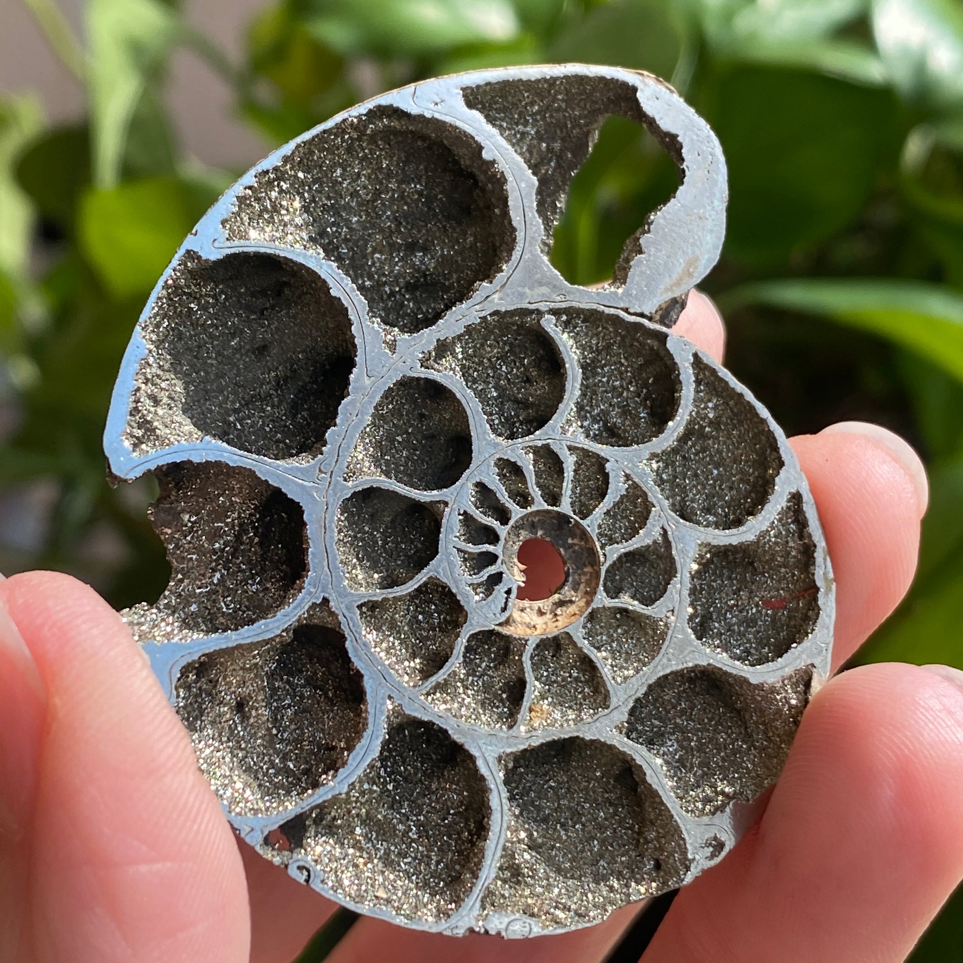 Over the eons, Ammonite shells have absorbed the energies of the cosmic and can infuse the body with this life force. Their spiral shape is a sign of the interconnectedness of all things and the divine or supreme plan of all life. Imbued with Earth Energy, these fossils help us connect with nature's healing power and grounds us, helping us sense our connection with all living things throughout time. It is thought to hold Ammonite shells while meditating can connect us to the knowledge of our ancient ancestors or from within our own past lives.