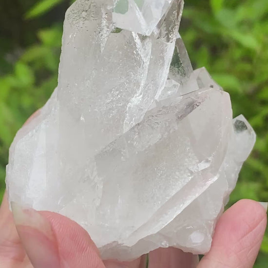 A lovely, natural raw Clear Quartz Cluster. Beautiful frosty look to these points, Very clean edges for a rough piece. You will receive the exact Quartz Cluster shown. This Clear Quartz crystal hails from Brazil. Clear Quartz is considered an essential healing crystal and cluster shapes are great for infusing energy throughout a room or workspace.