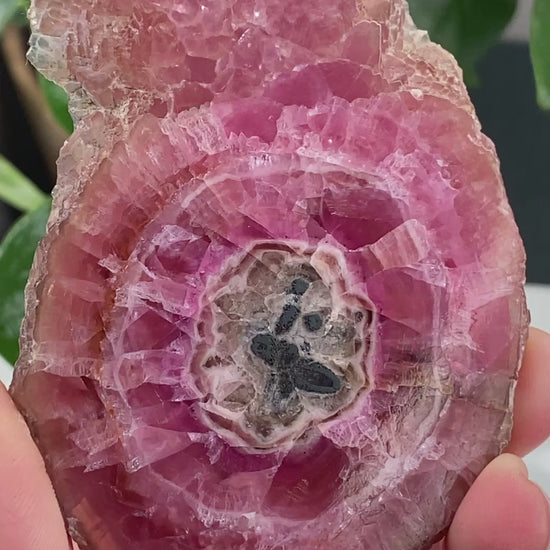 An incredibly rare find, this is a Cobaltoan Calcite Stalactite Slab. Currently, the only available example of a Cobaltoan Calcite stalactite available to purchase online. This material does not form stalactites; this is likely a pseudomorph where the original stalactite was replaced with Cobaltoan Calcite. Fully intact. Both the quality of gems and color is excellent. Both sides are polished. This would have come from a very large formation. Stalactites can take up to a million years per inch of growth. I found this lot in Tucson in 2022.
