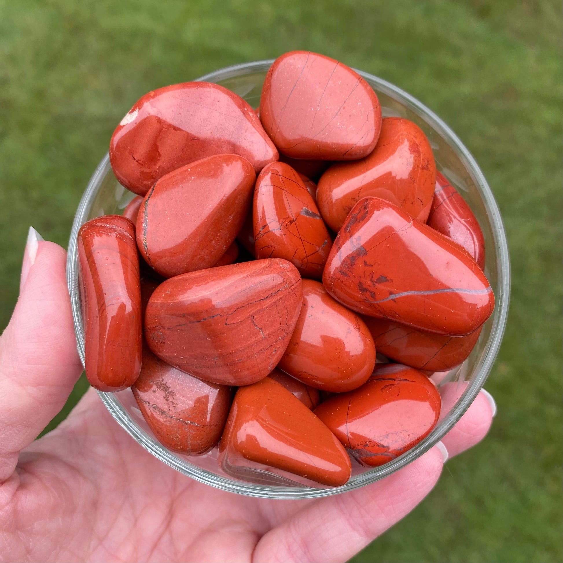 Red Jasper Tumbled Stone - Large, natural Red Jasper stones with beautiful clay color and an organic shape. Red Jasper is both calming and energizing - its powerful Earth energy is grounding and brings a feeling of stability which promotes peace. Also, Jasper has an ancient association with the ' blood of the Earth ' This represents and inspires a passion for life and motivation to live with energetic motivation towards fulfilling our this moment's purpose.