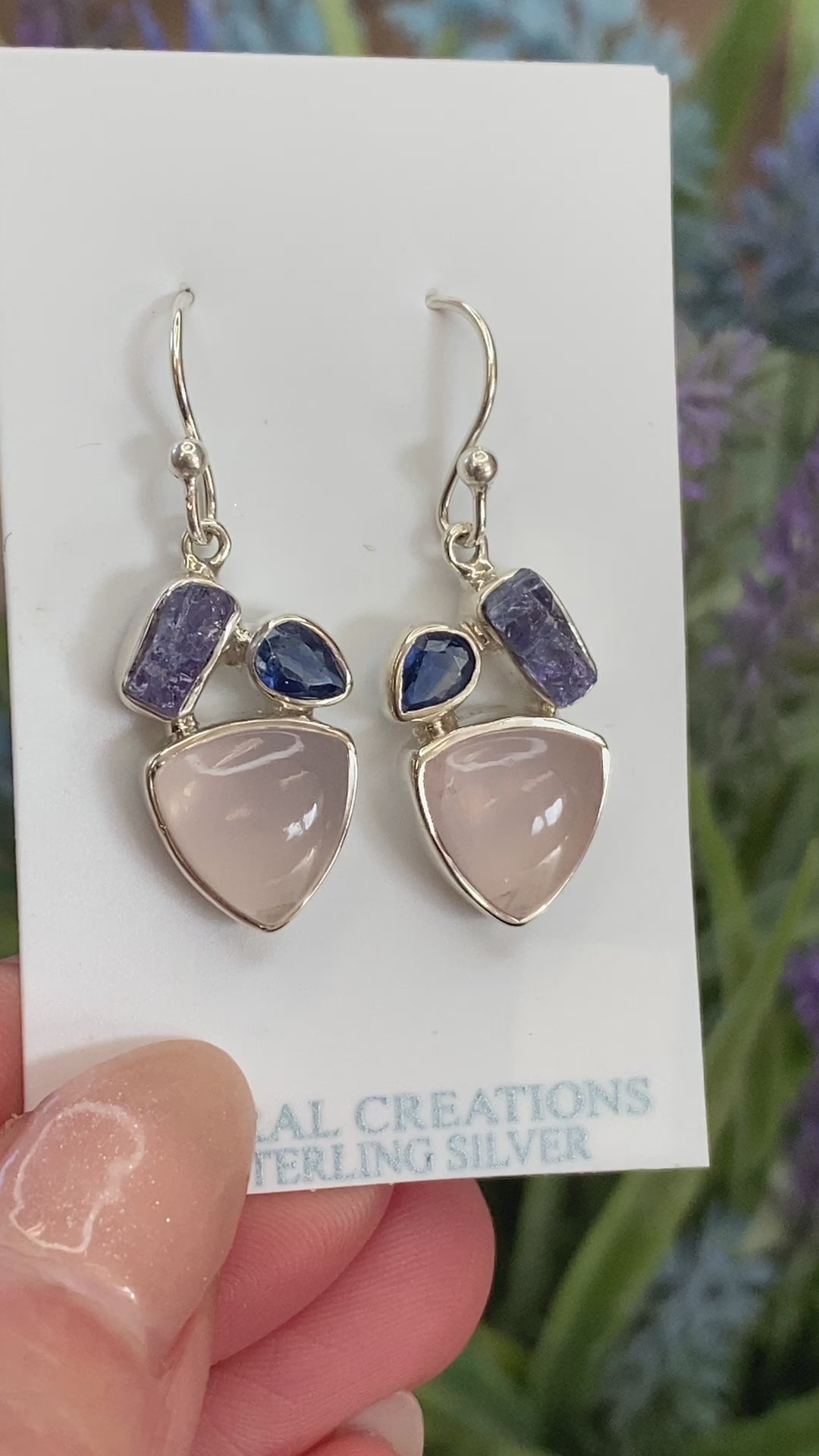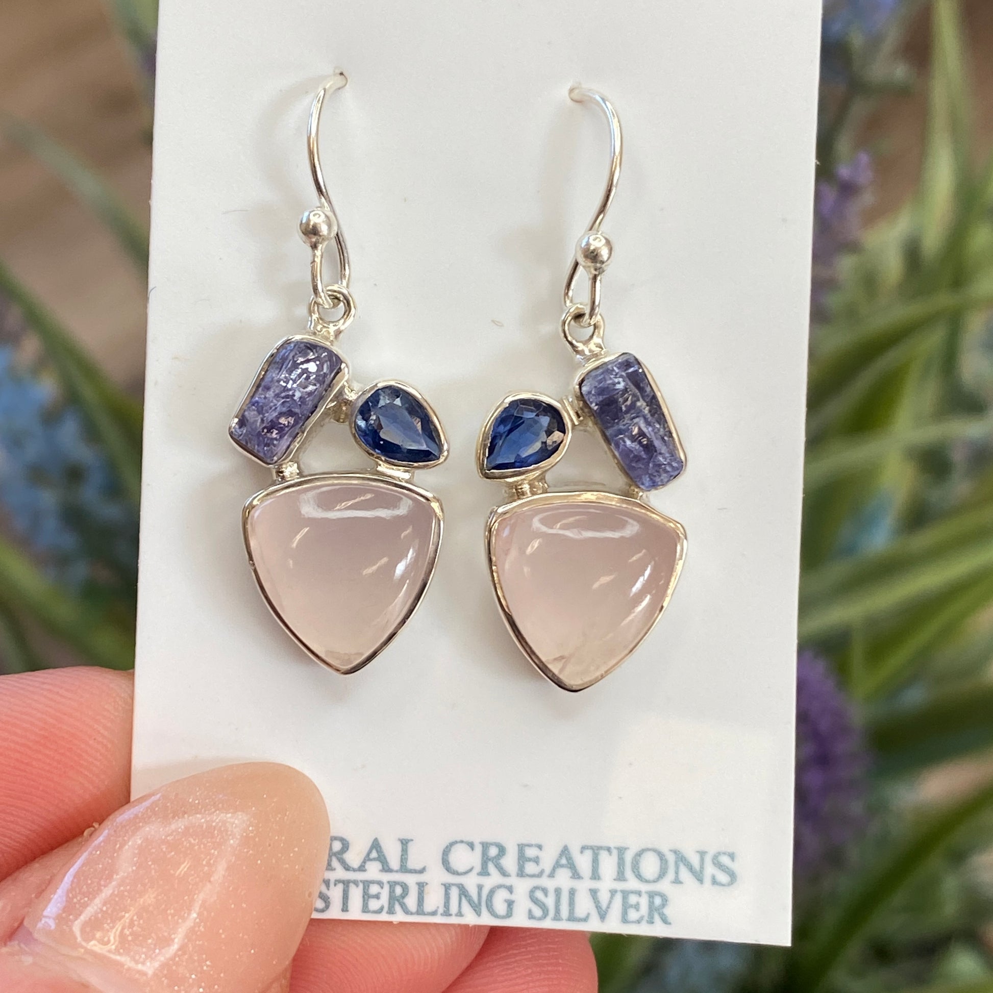 Rose Quartz, Kyanite, Tanzanite Earrings, .925 Sterling
