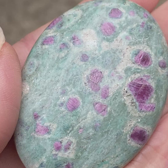 A stone for the Heart Chakra, Ruby Fuchsite is the perfect combination for love, fertility, and positive growth. The contrasting colors and densities of these stones is a wonderful symbol of unity, togetherness and a lasting bond. Fuchsite, or Verdite, is a form of Muscovite that contains Chromium, giving it a natural, pastel green color. It is also Chromium that gives Ruby its red color. Fuchsite and Ruby both form independently of each other, but occasionally occur together creating the beautiful combination stone Ruby Fuchsite. Fuchsite is pronounced ‘fook'site