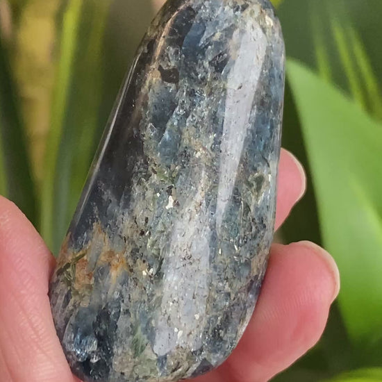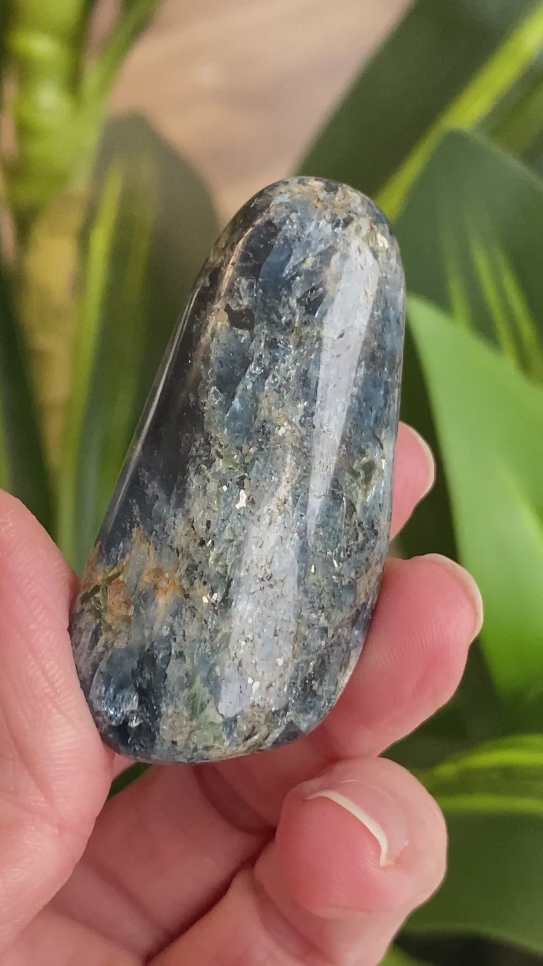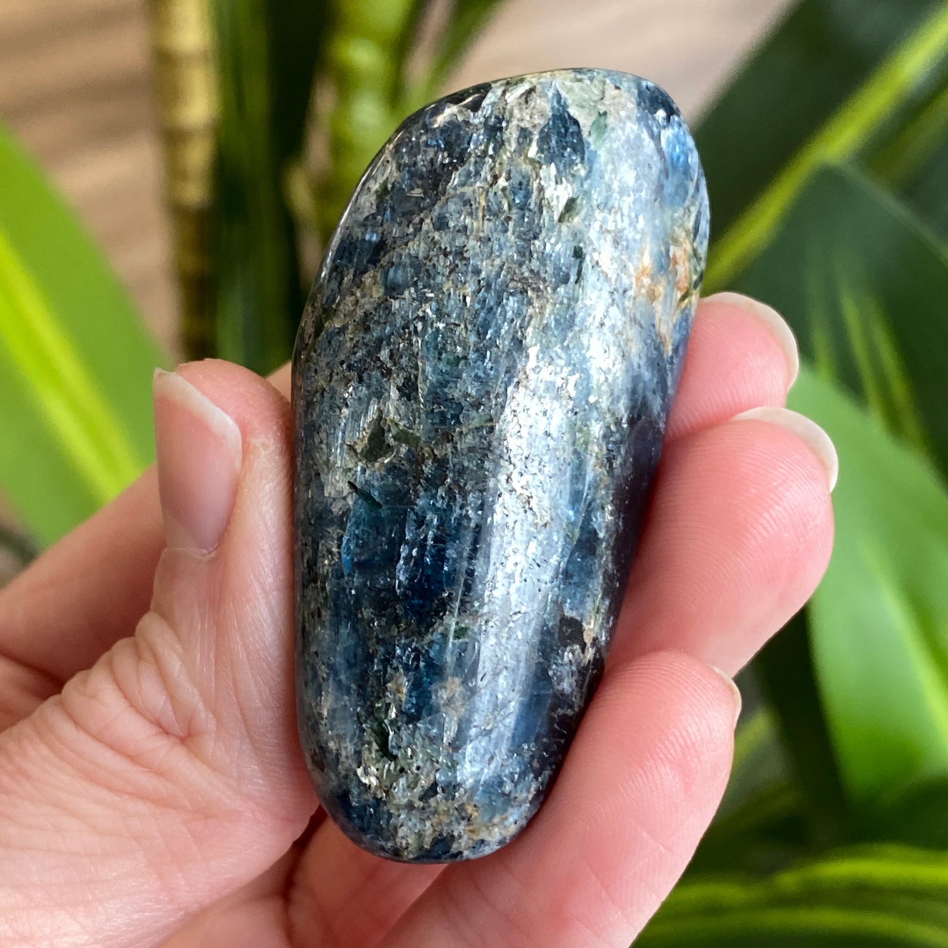 A lovely teal Kyanite stone hailing from Tanzania. A deep, unusual teal color. A very nice shape for holding. You will receive the exact Kyanite shown.